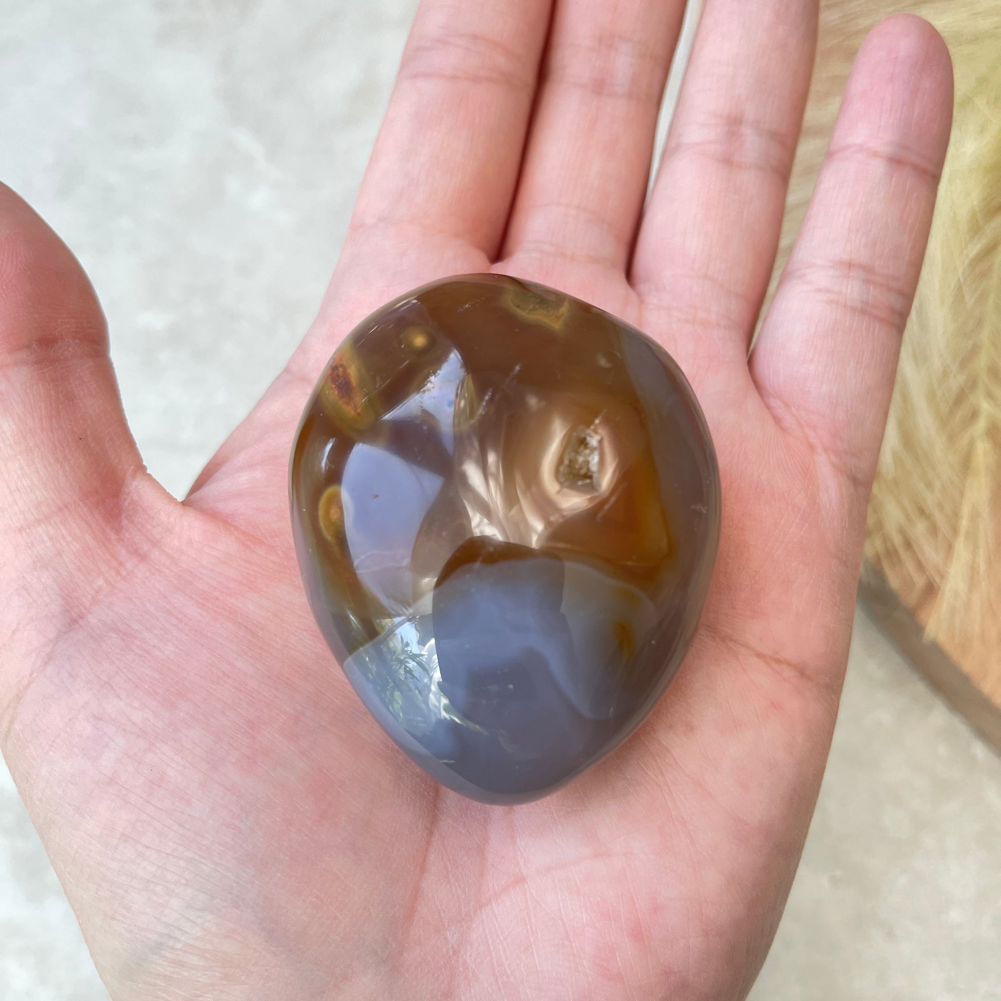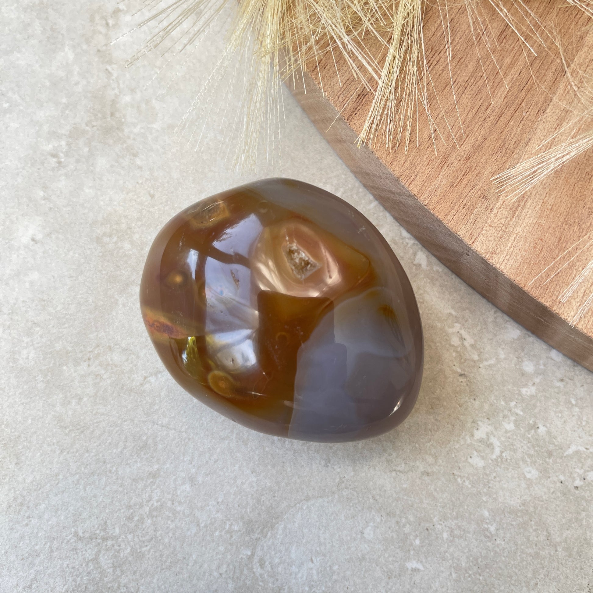 Agate can be found in various colours, with bands flowing within the stone or with lots of tiny 'druzy' crystals inside. Agate stones are grounding and convey stability emotionally, physically and intellectually. Agate is a balancing crystal as it harmonises yin and yang, Agates work slowly to bring out strength but the energy is powerful. It is a useful crystal to have when feeling vulnerable.