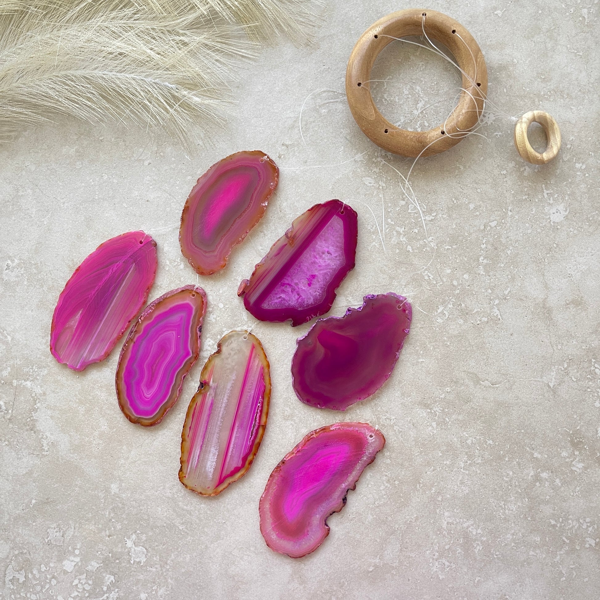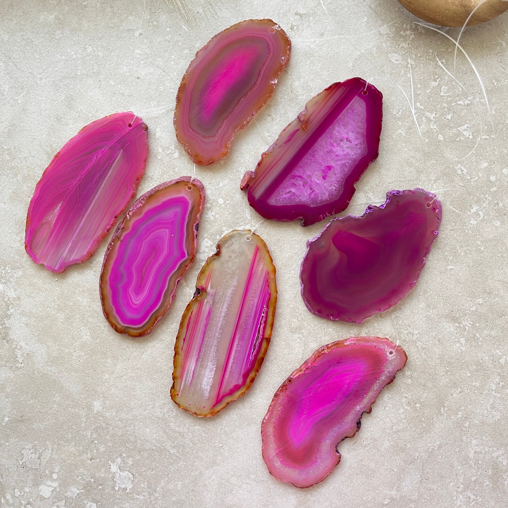The Agate pieces are natural and have been dyed. Exposure to the elements over time can fade the colour.