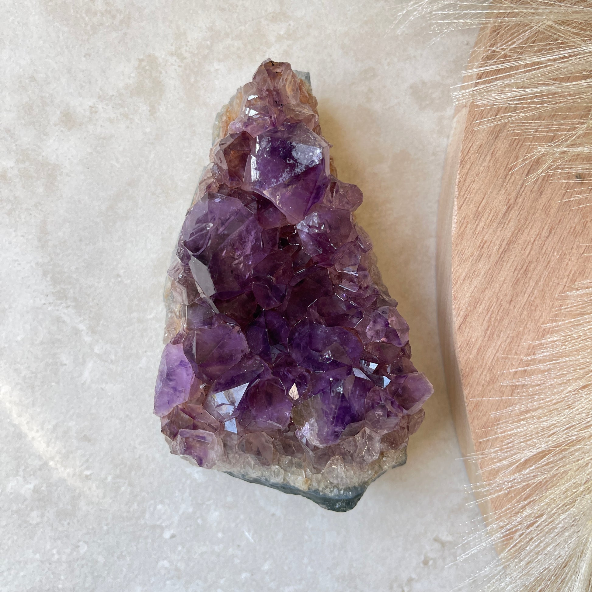 Amethyst is a variety of quartz that can be found in a range of purples, light to dark. Amethyst is said to help clear and purify, removing negative energies. A good stone for protection and bringing calm.