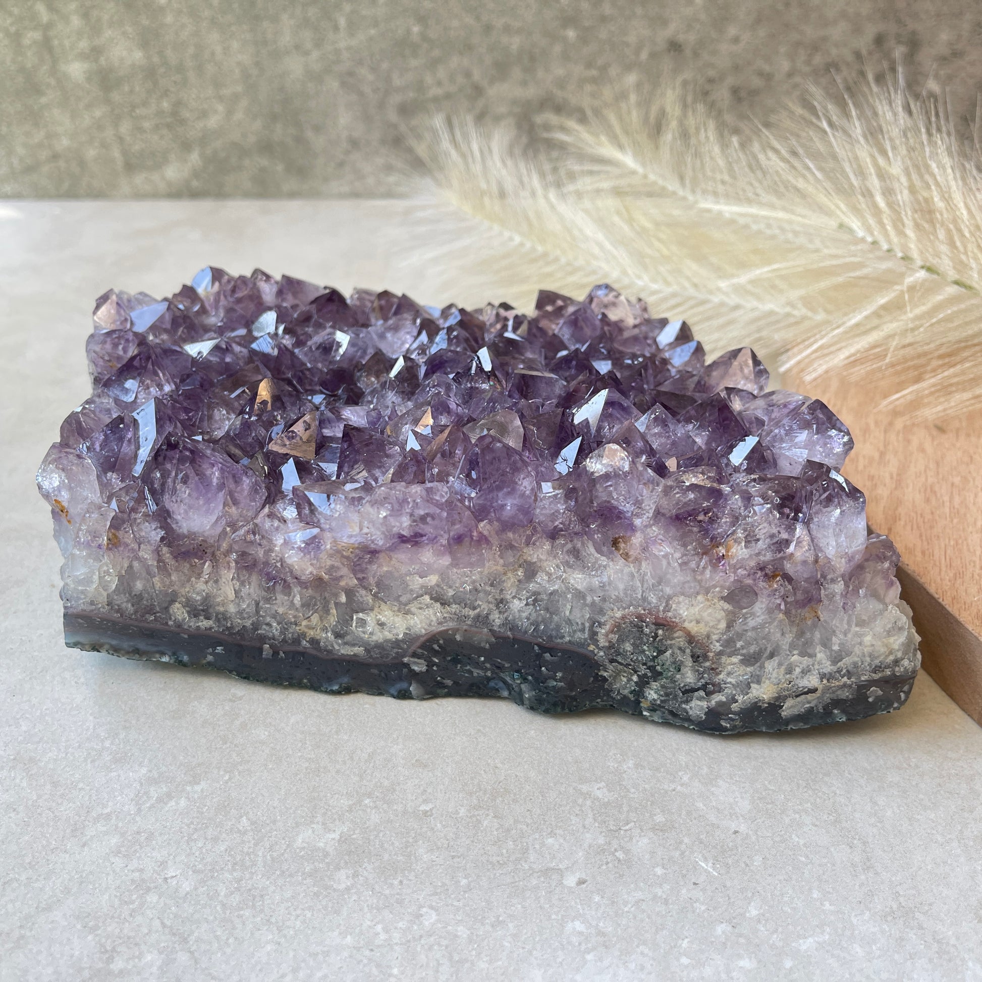 Amethyst is a variety of quartz that can be found in a range of purples, light to dark. Amethyst is said to help clear and purify, removing negative energies. A good stone for protection and bringing calm.