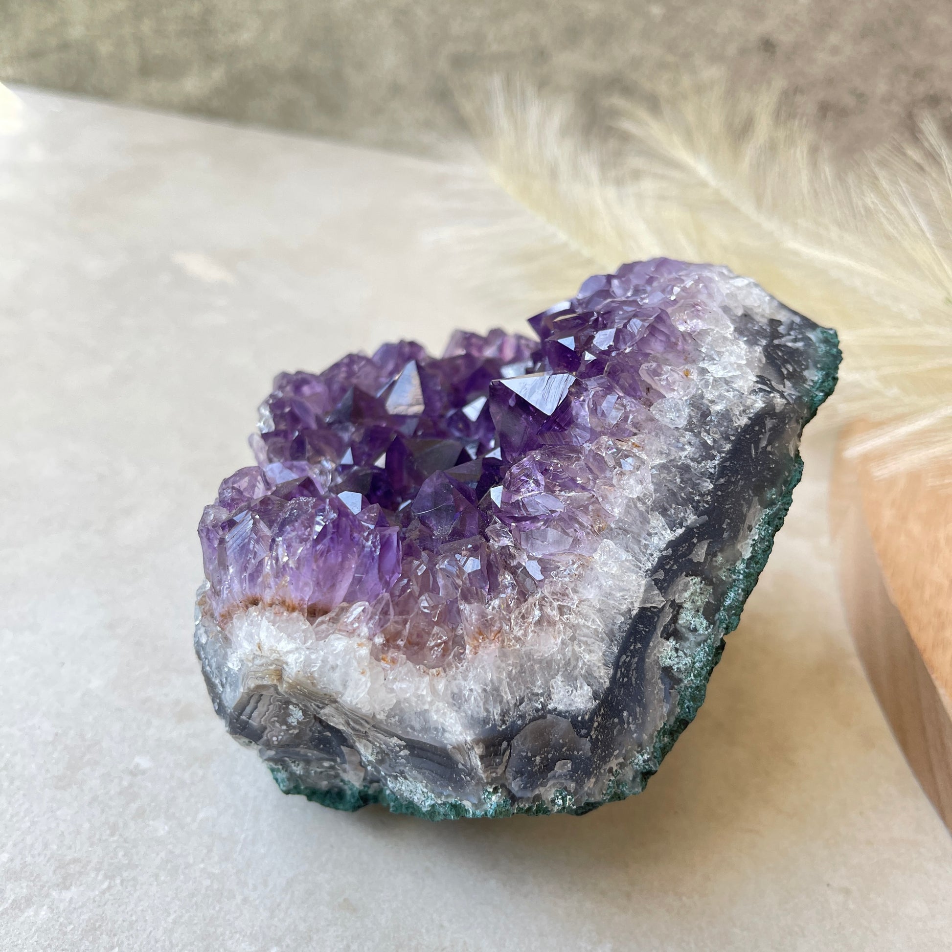 Amethyst is a variety of quartz that can be found in a range of purples, light to dark. Amethyst is said to help clear and purify, removing negative energies. A good stone for protection and bringing calm.