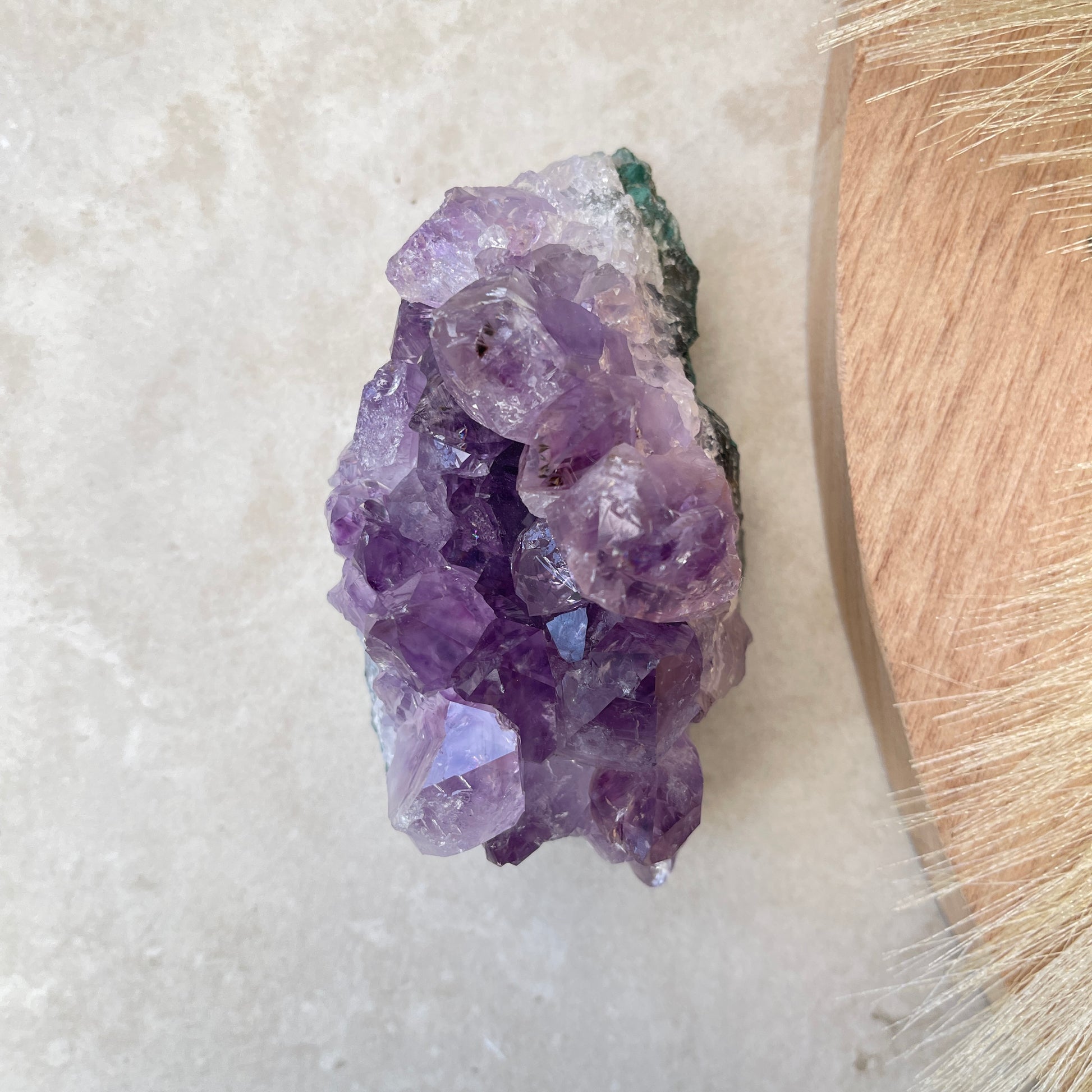 Amethyst is a variety of quartz that can be found in a range of purples, light to dark. Amethyst is said to help clear and purify, removing negative energies. A good stone for protection and bringing calm.