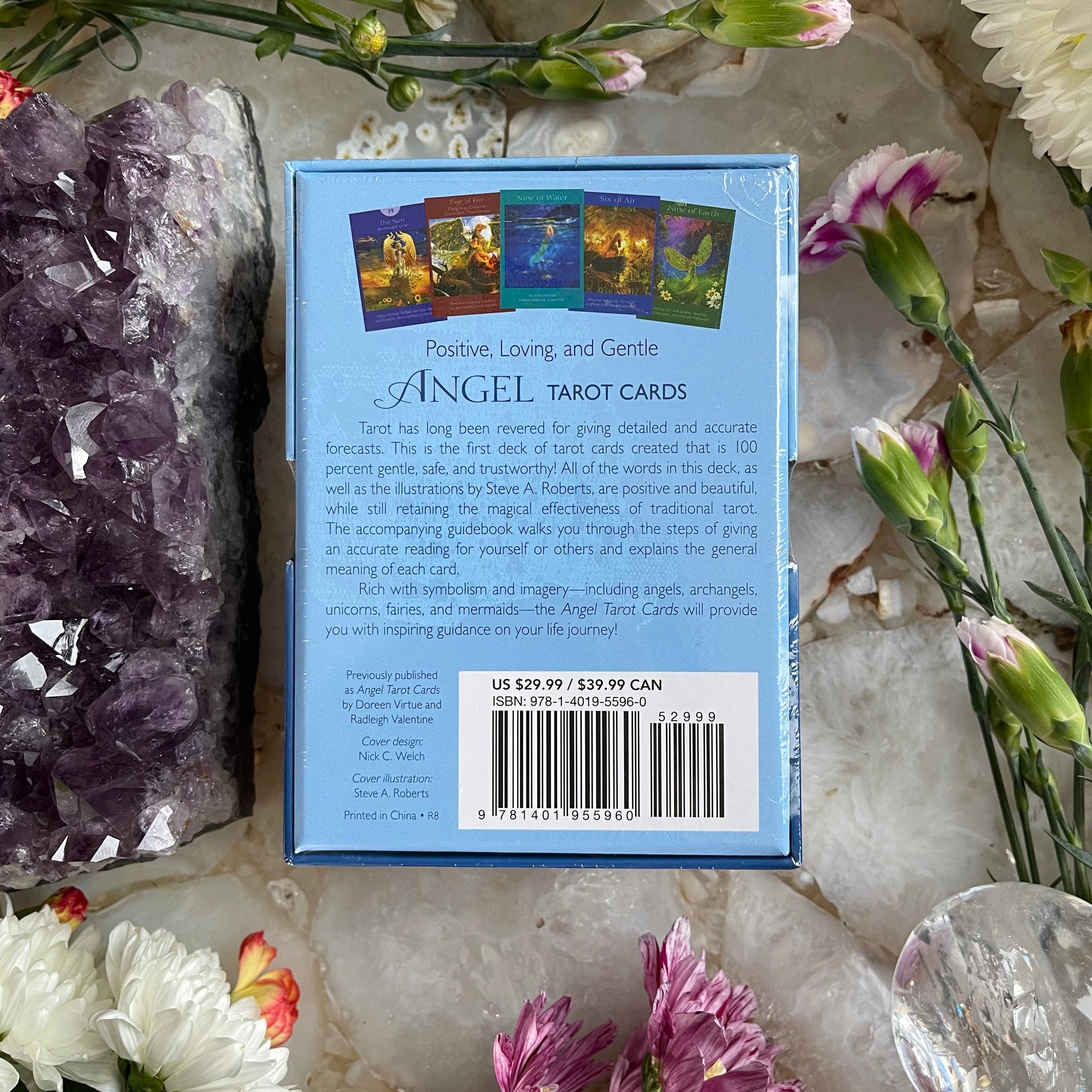 Tarot has long been revered for giving detailed and accurate forecasts. This is the first deck of tarot cards created that is 100 percent gentle, safe, and trustworthy! All of the words in this deck, as well as the illustrations by Steve A. Roberts, are positive and beautiful, while still retaining the magical effectiveness of traditional tarot. The accompanying guidebook walks you through the steps of giving an accurate reading for yourself or others and explains the general meaning of each card.Rich with symbolism and imagery—including angels, archangels, unicorns, fairies, and mermaids—the Angel Tarot Cards will provide you with inspiring guidance on your life journey! Previously published as Angel Tarot Cards by Doreen Virtue and Radleigh Valentine.