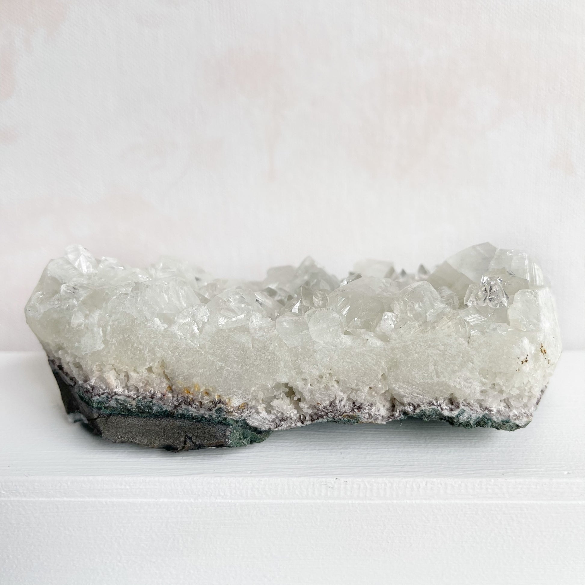 Apophyllite connects the physical and spiritual realms. It has the ability to attune to higher frequencies of energies, access multi dimensions, a window to other worlds and inter-dimensional travel. Apophyllite can be used to contact guardian angels and spirit guides or to access high angelic realms and help develop prophetic vision. Meditating and working with Apophyllite has a calming effect, ideal for those wanting to reduce stress, clear mental blockages and release negative though patterns. Also, Apophyllite can assist those wanting to overcome their anxiety, worries and fears. Having Apophyllite in the home can create a spiritual environment with a sense of purity.