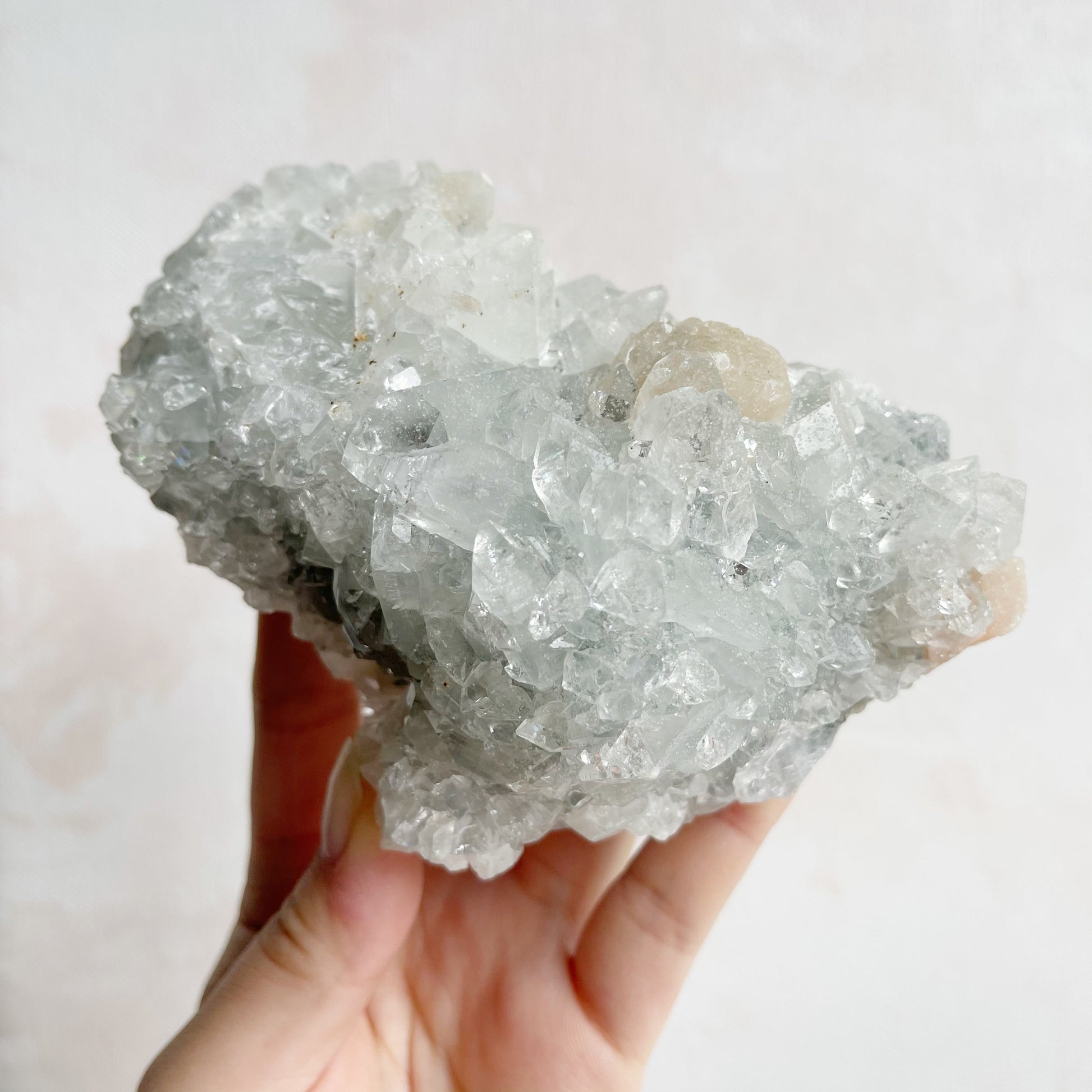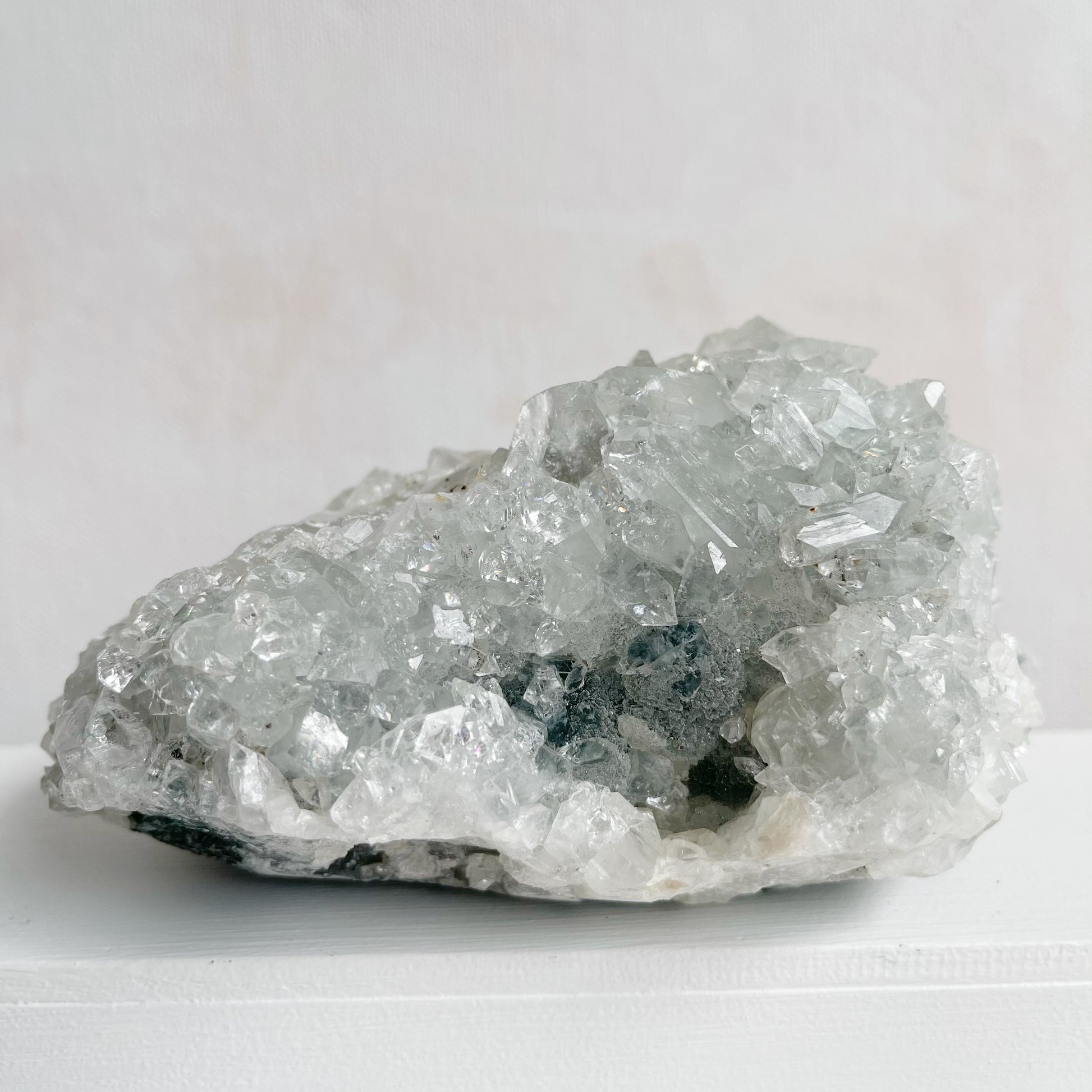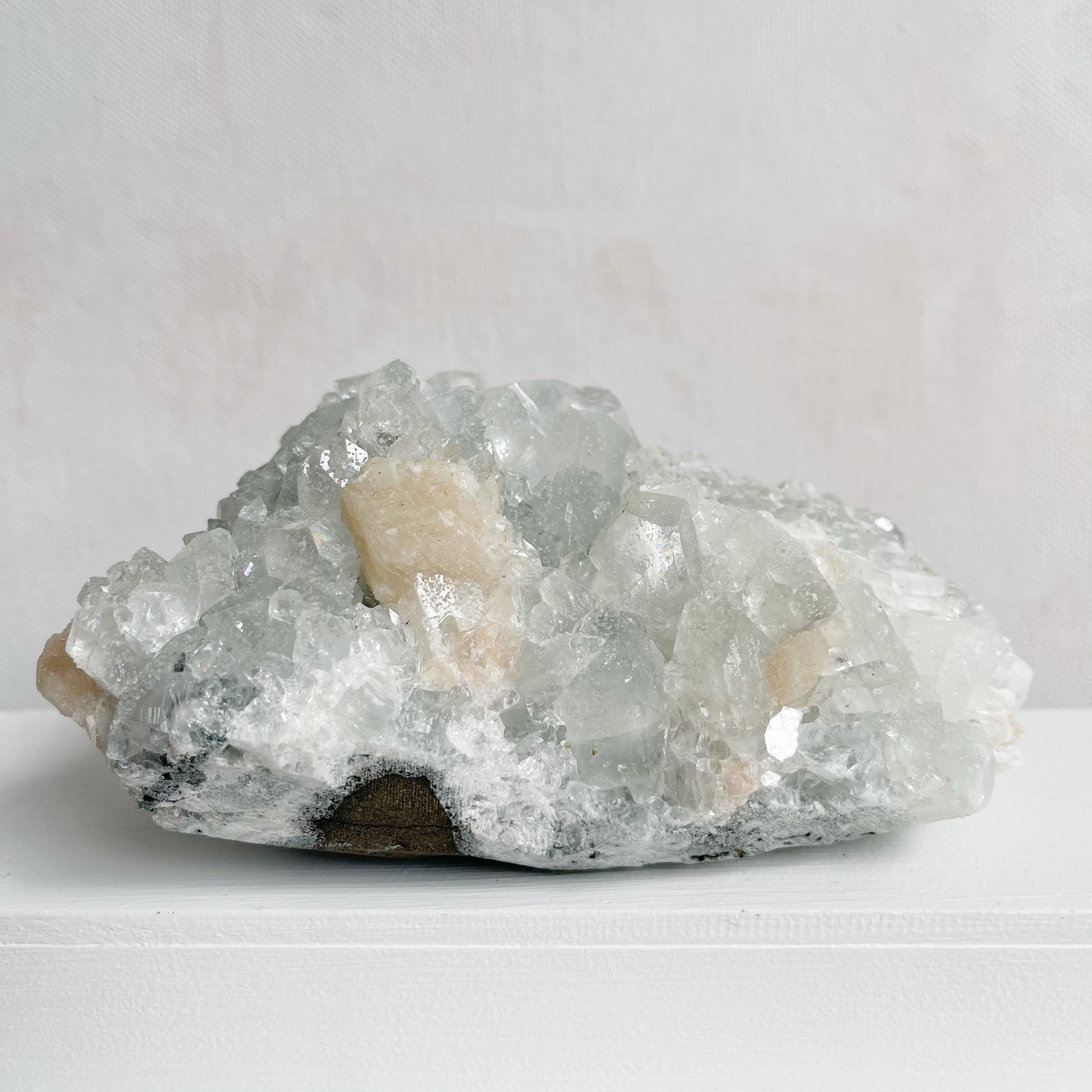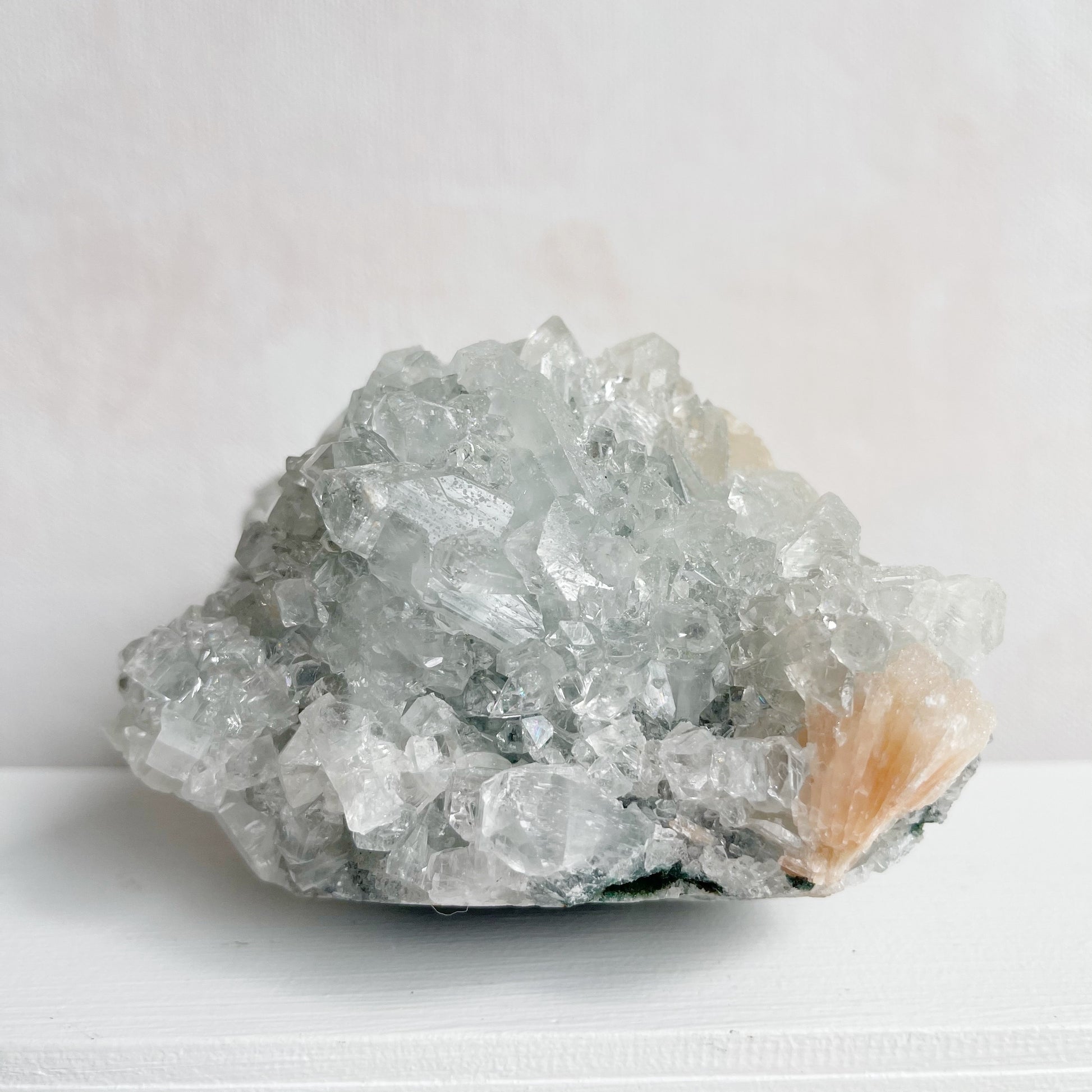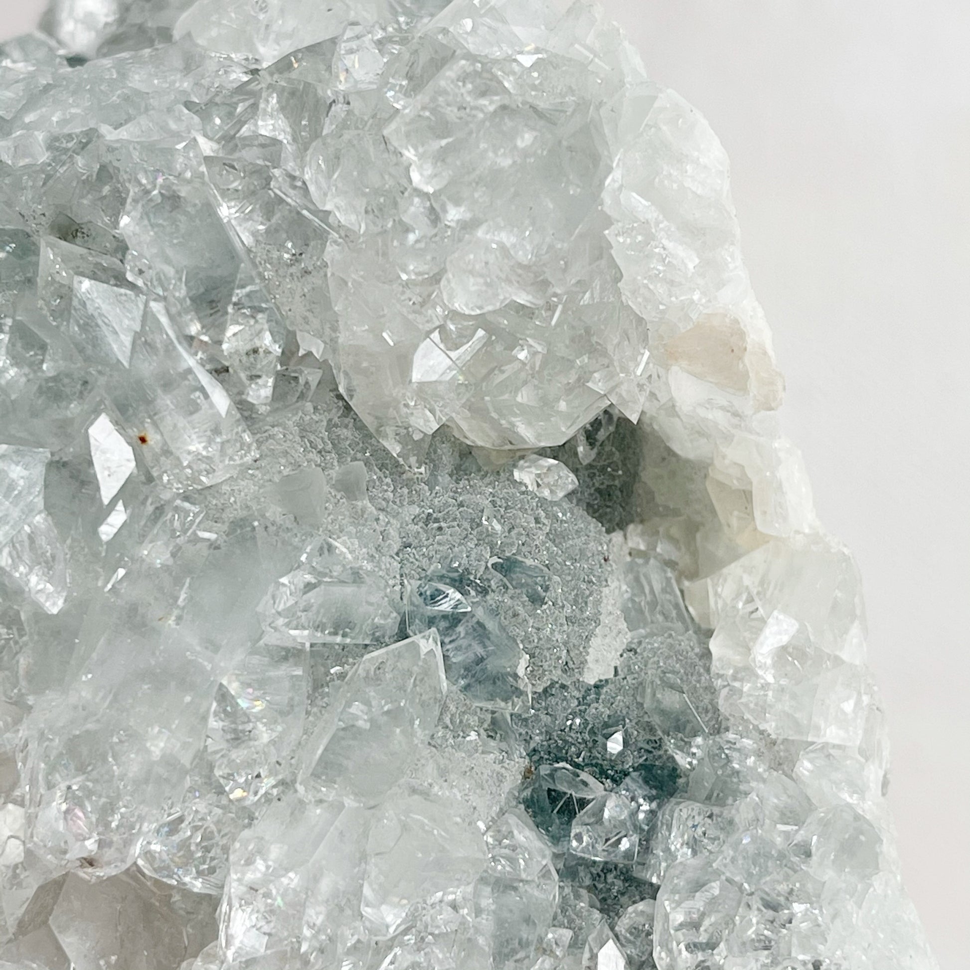 Apophyllite connects the physical and spiritual realms. It has the ability to attune to higher frequencies of energies, access multi dimensions, a window to other worlds and inter-dimensional travel. Apophyllite can be used to contact guardian angels and spirit guides or to access high angelic realms and help develop prophetic vision. Meditating and working with Apophyllite has a calming effect, ideal for those wanting to reduce stress, clear mental blockages and release negative though patterns. Also, Apophyllite can assist those wanting to overcome their anxiety, worries and fears. Having Apophyllite in the home can create a spiritual environment with a sense of purity.