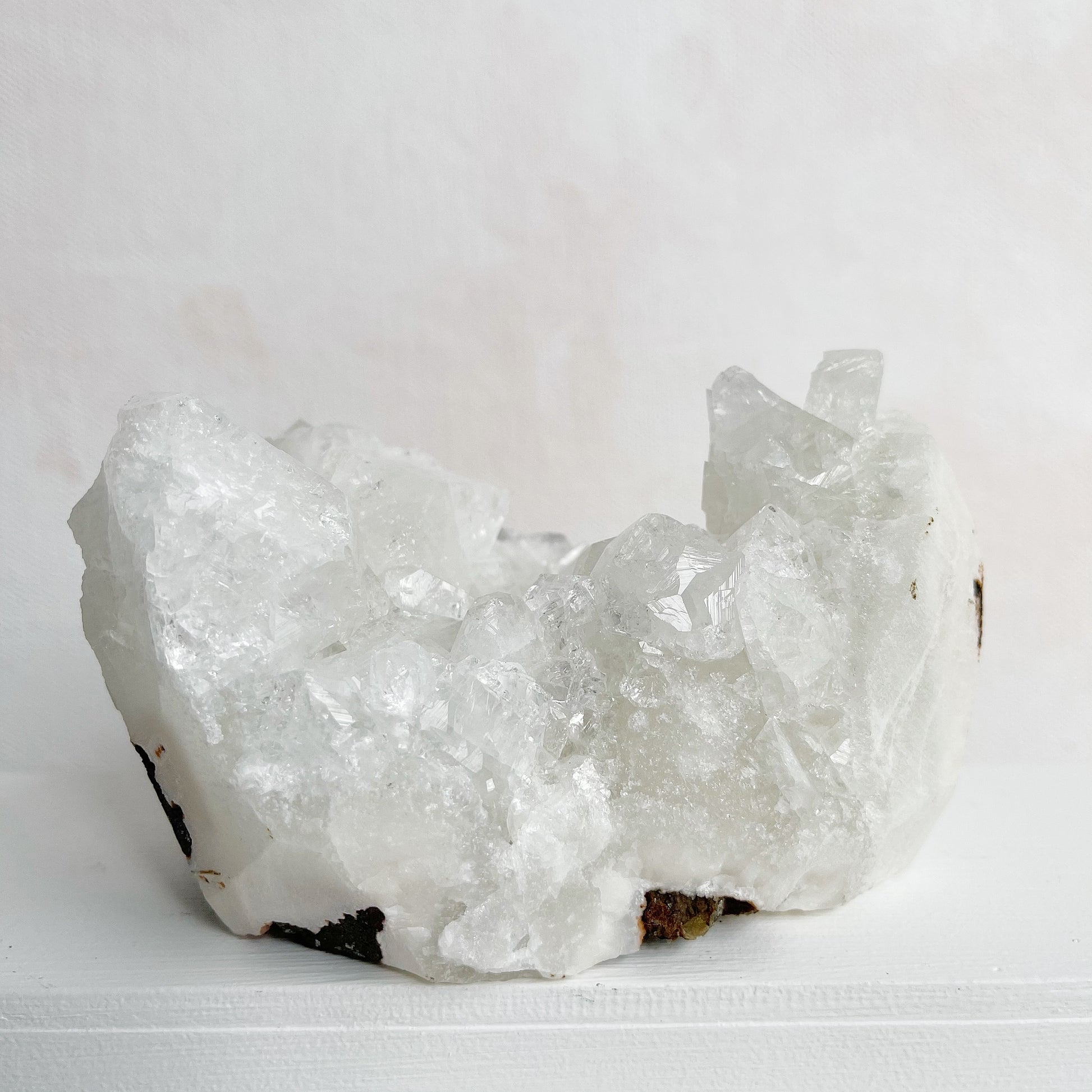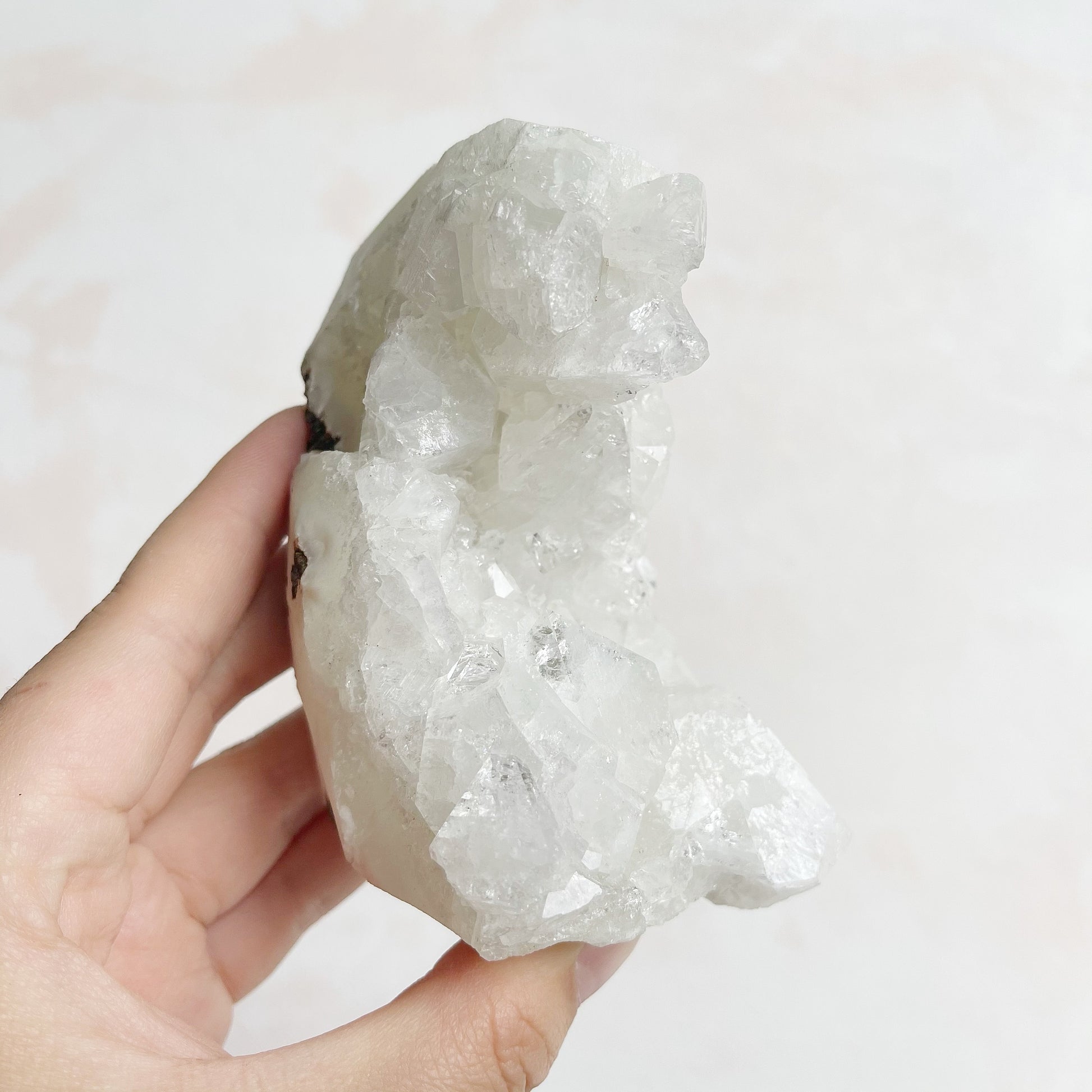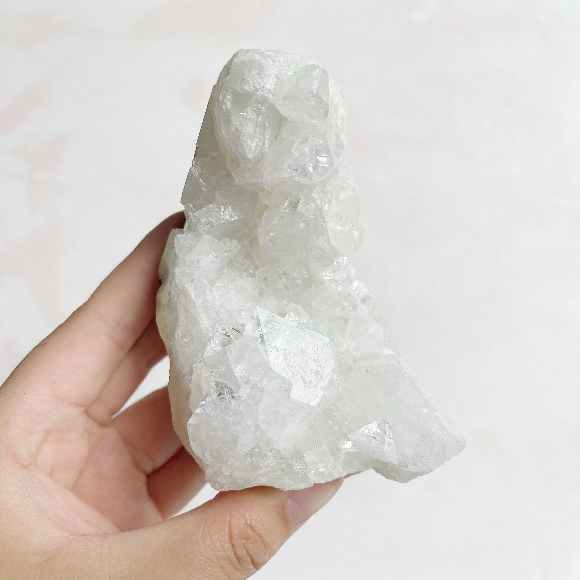 Apophyllite connects the physical and spiritual realms. It has the ability to attune to higher frequencies of energies, access multi dimensions, a window to other worlds and inter-dimensional travel. Apophyllite can be used to contact guardian angels and spirit guides or to access high angelic realms and help develop prophetic vision. Meditating and working with Apophyllite has a calming effect, ideal for those wanting to reduce stress, clear mental blockages and release negative though patterns. Also, Apophyllite can assist those wanting to overcome their anxiety, worries and fears. Having Apophyllite in the home can create a spiritual environment with a sense of purity.