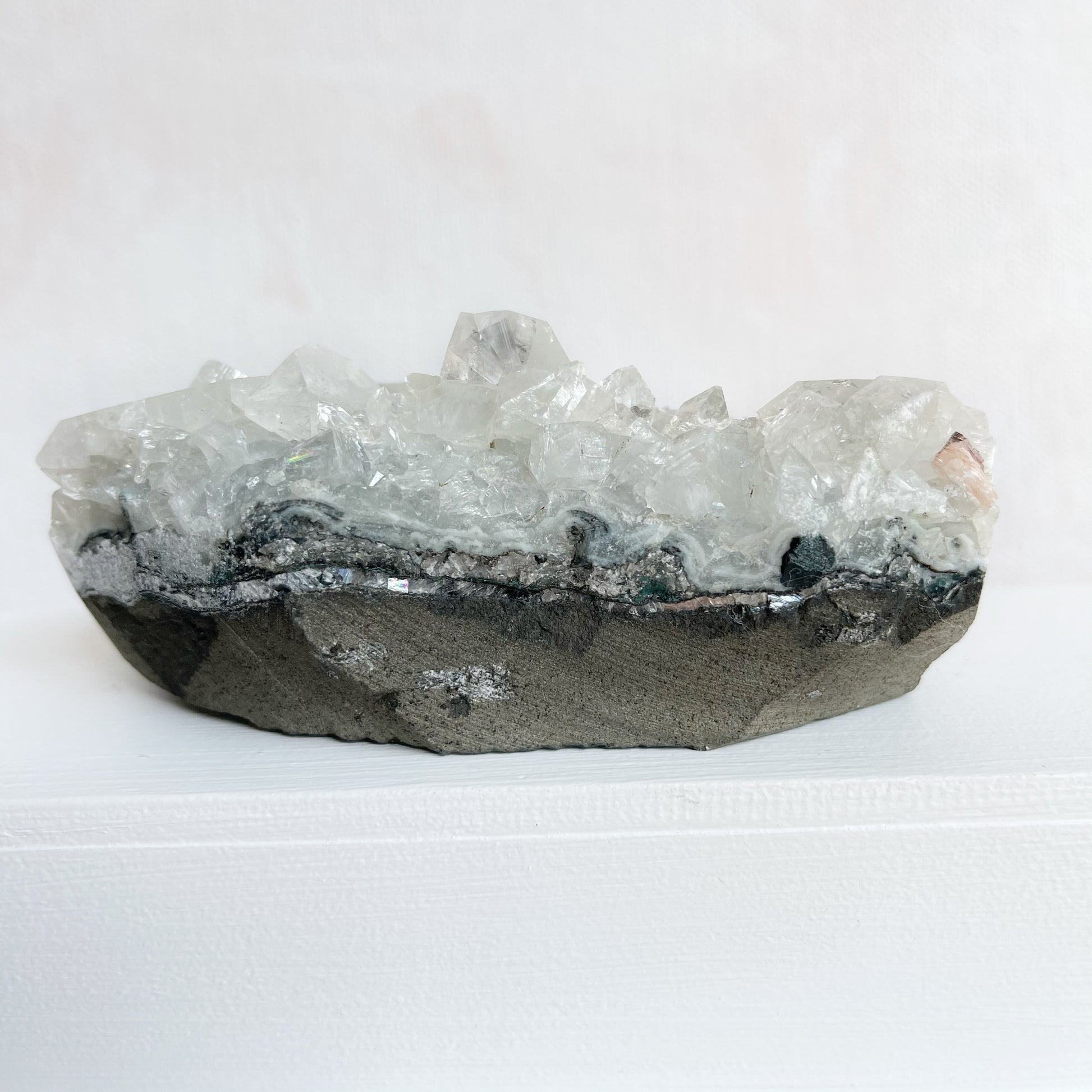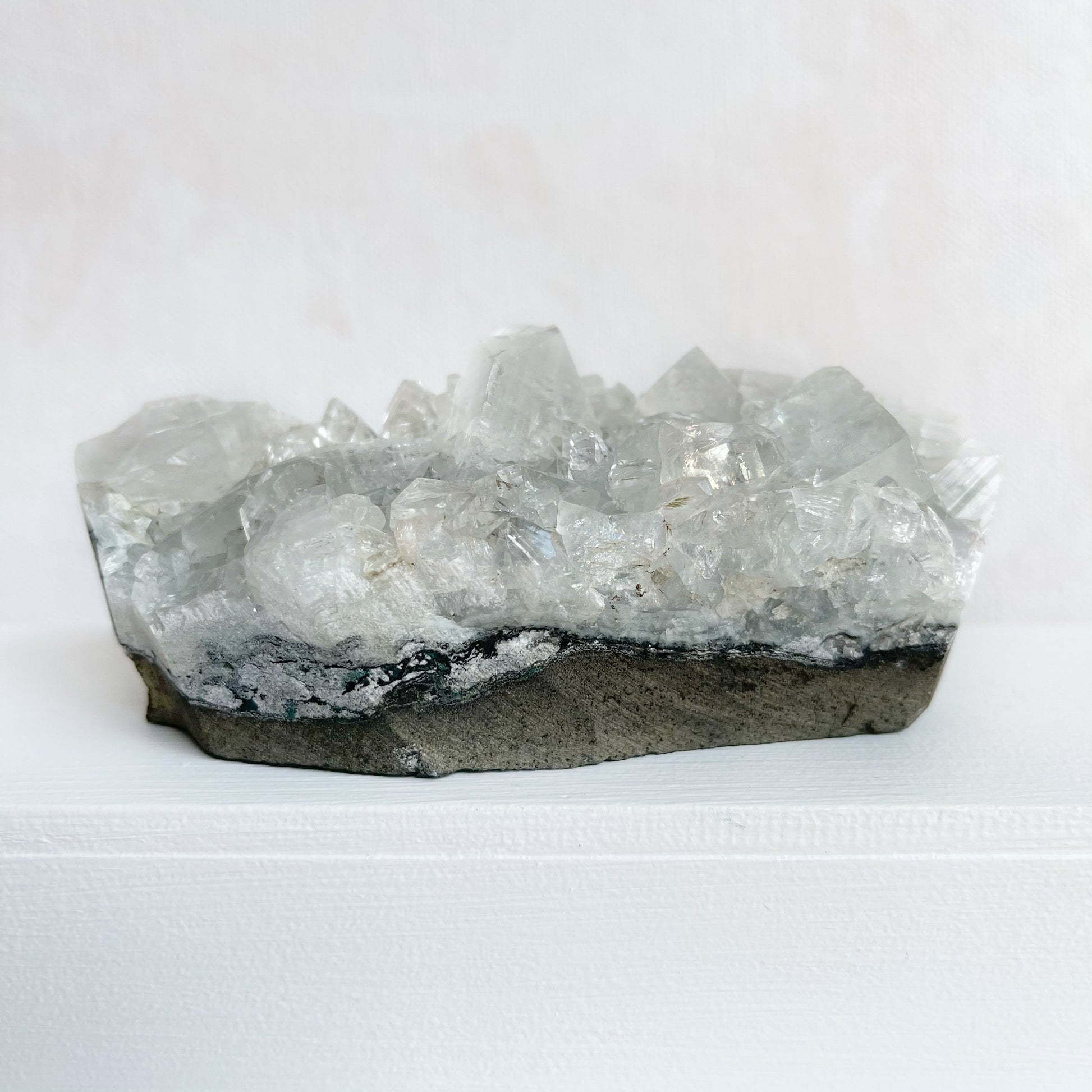 Apophyllite connects the physical and spiritual realms. It has the ability to attune to higher frequencies of energies, access multi dimensions, a window to other worlds and inter-dimensional travel. Apophyllite can be used to contact guardian angels and spirit guides or to access high angelic realms and help develop prophetic vision. Meditating and working with Apophyllite has a calming effect, ideal for those wanting to reduce stress, clear mental blockages and release negative though patterns. Also, Apophyllite can assist those wanting to overcome their anxiety, worries and fears. Having Apophyllite in the home can create a spiritual environment with a sense of purity.