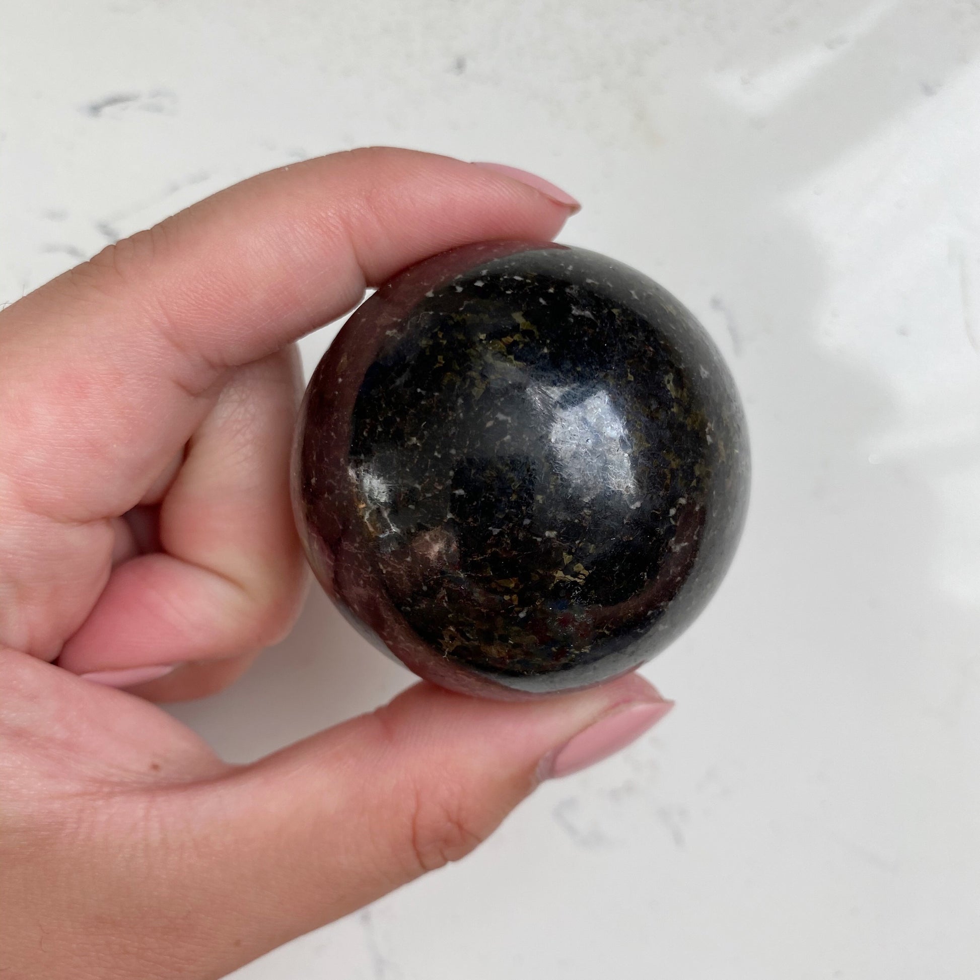 You will receive one Black Tourmaline Sphere. Chosen intuitively for you, please note each piece is natural and may vary slightly. Reminder this is a natural crystal, marks and inconsistencies are not flaws but are part of the crystal.