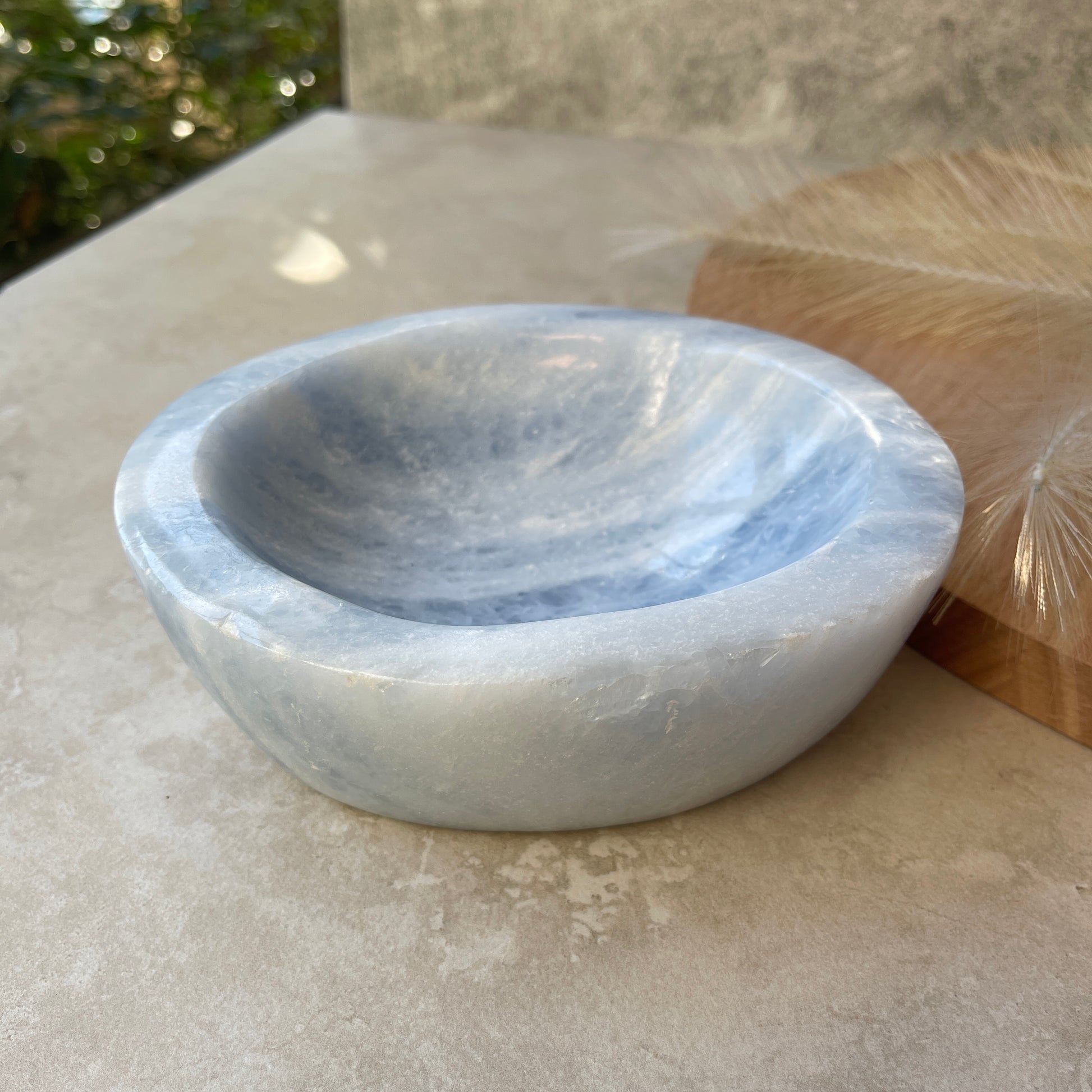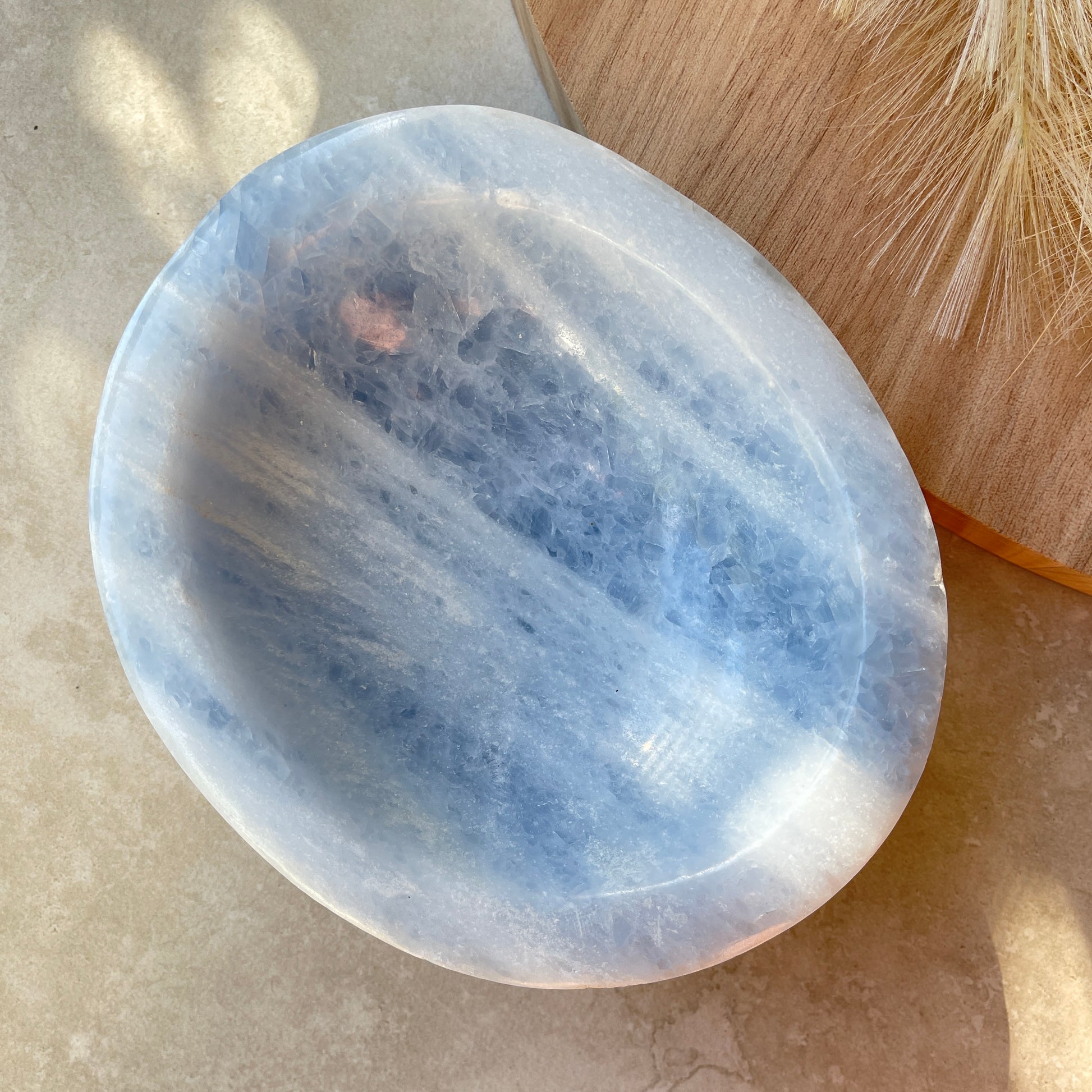 Blue Calcite is the stone of recuperation and relaxation. It soothes the mind and body. A calming stone, ideal for sensitive souls who pick up on other people's unwanted baggage of thoughts and energies. It draws away negative unwanted energies from the aura, lifts feelings of anxiety, pain and stress. Blue Calcite aids in communication, the throat chakra, in enabling self expression, inner voice and to speak your truth. It can also be used to enhances dreams.