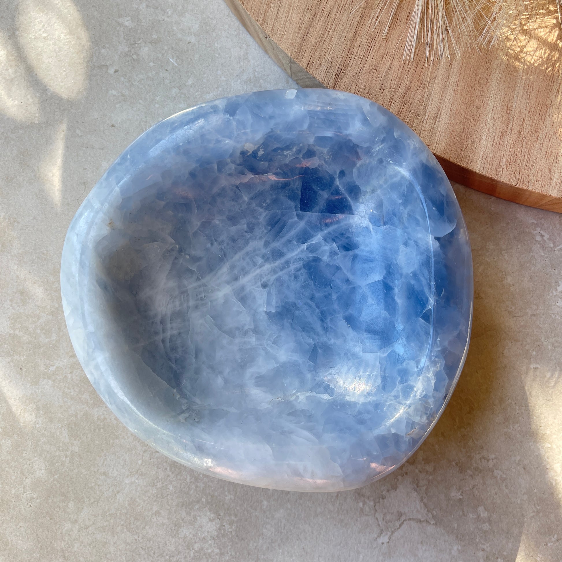 Blue Calcite is the stone of recuperation and relaxation. It soothes the mind and body. A calming stone, ideal for sensitive souls who pick up on other people's unwanted baggage of thoughts and energies. It draws away negative unwanted energies from the aura, lifts feelings of anxiety, pain and stress. Blue Calcite aids in communication, the throat chakra, in enabling self expression, inner voice and to speak your truth. It can also be used to enhances dreams.