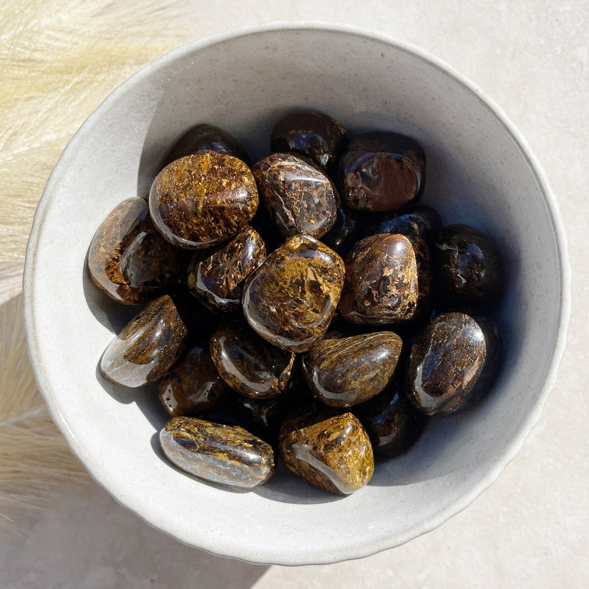 Bronzite is a magical protector, it deflects negative thoughts, ill wishes and psychic attacks. Bronzite being of Earth energy, brings strength when feeling powerless and in situations that are out of your control. Bronzite is a grounding stone, it also brings stability and a sense of calm and serenity when feeling stress and anxiety. Meditating with Bronzite can bring clarity and clearer thinking. It is also believed to release excess emotional baggage and helps to release thoughts and feelings that may be holding you back, encouraging forgiveness and letting go.