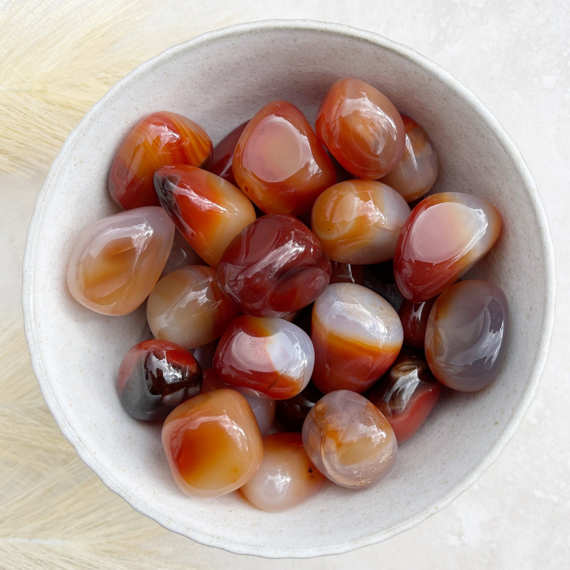 Carnelian is a stone that brings warmth. It is an invigorating stone to the mind and body, it has strong energy and therefore has many attributes, such as vitality, courage, confidence and motivation. It can aid during times of health issues such as illness or injury restoring vitality, it promotes business success and success in other parts of life journey by aiding in creativity and passion. Carnelian is a stone of action and can help us build courage to complete goals when we put our mind to it.