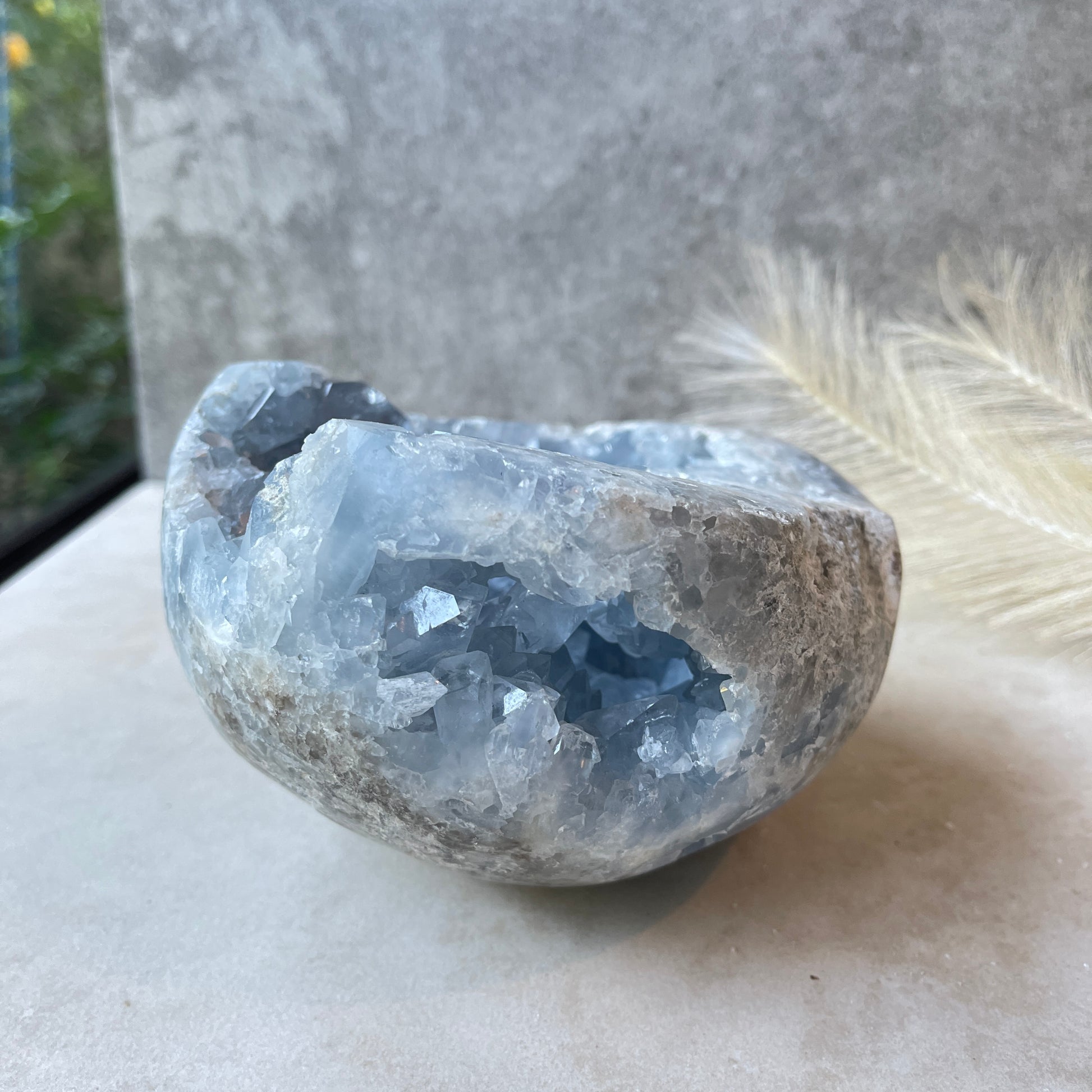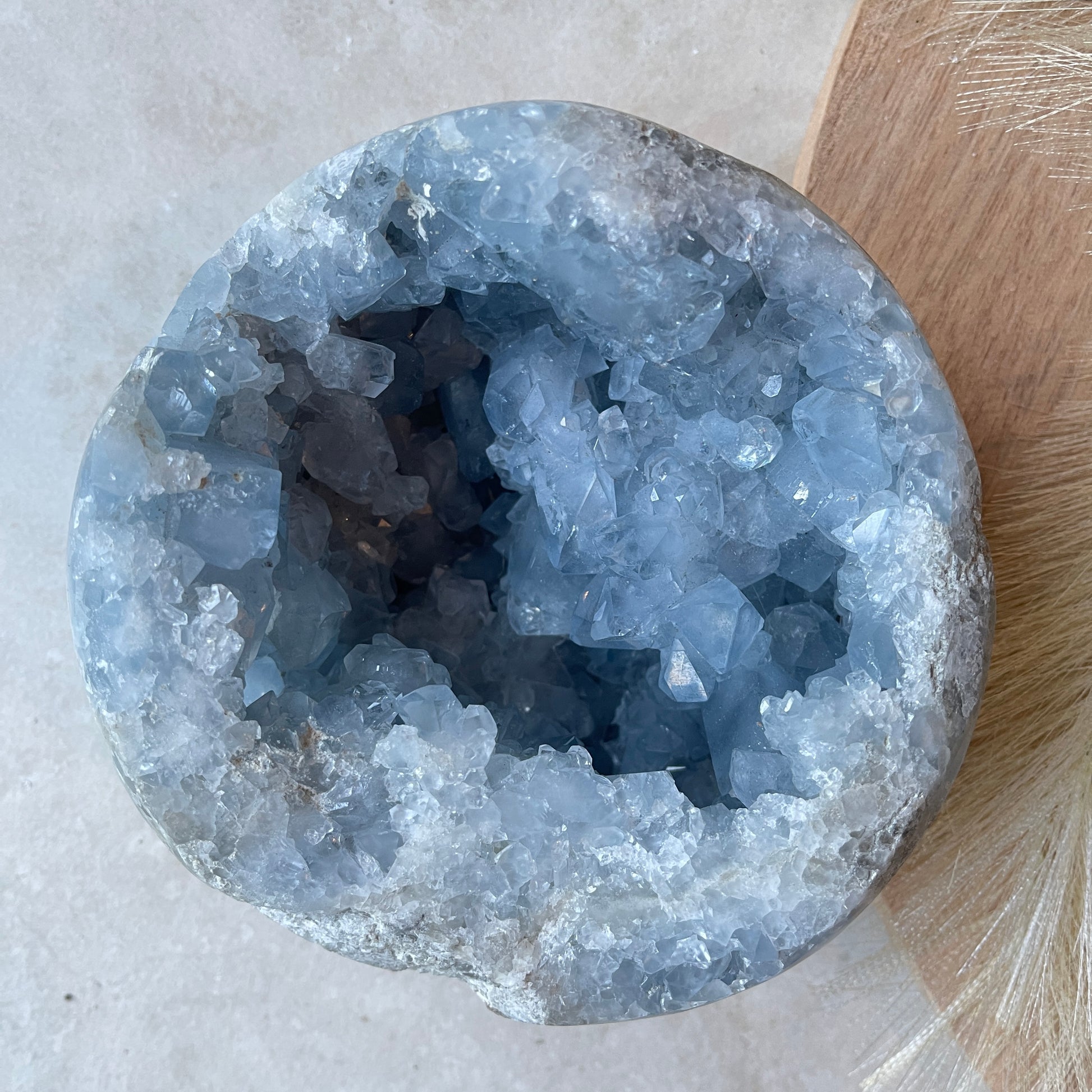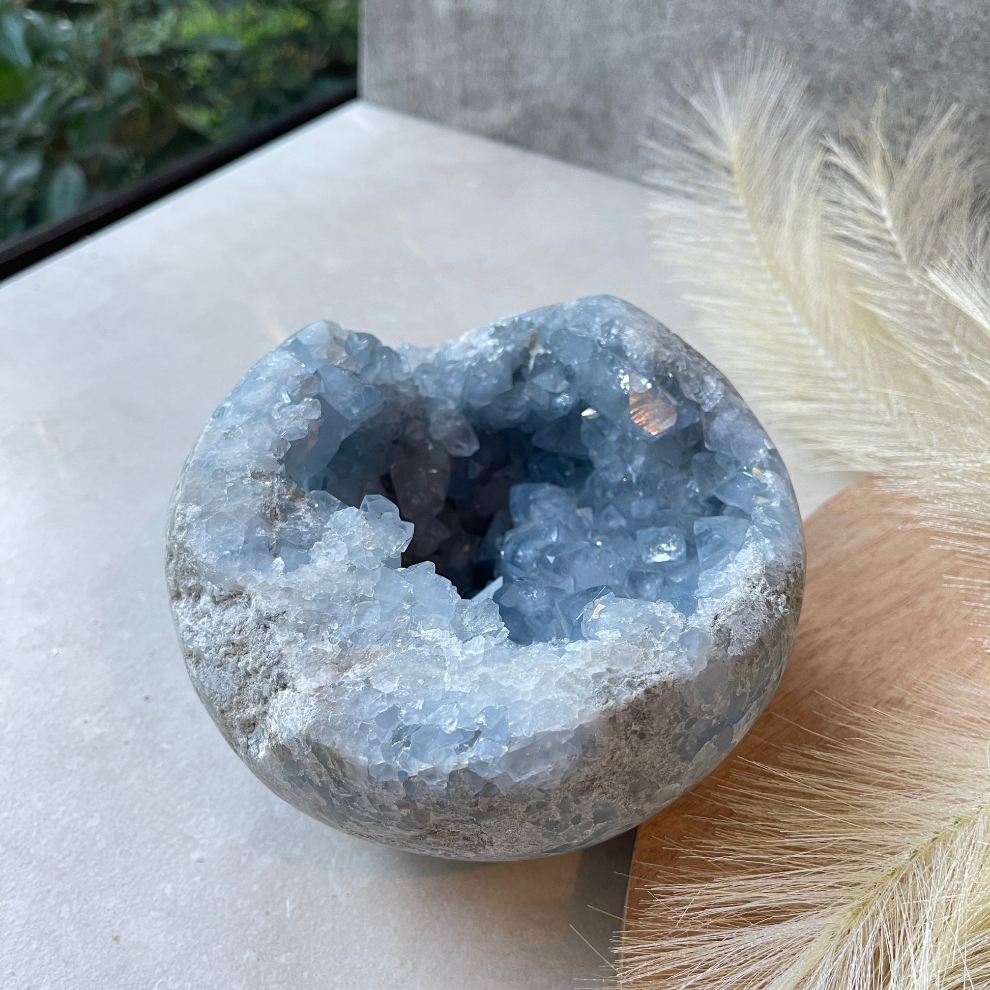 Celestite or also known as Celestine is a dreamy blue colour. This crystal is a peaceful spiritual stone that has links to our inner guardian angels and used to assist with communication. It is a gentle and soothing stone that can guide you to light and love. This crystal has calming energies which is ideal in bedrooms or in living areas. This is a soft stone physically and energetically with a hardness of 3 - 3.5. Care should be taken handling this crystal as it can crumble.