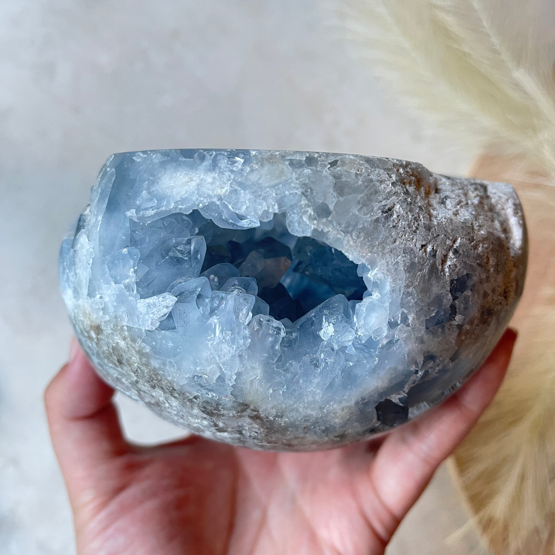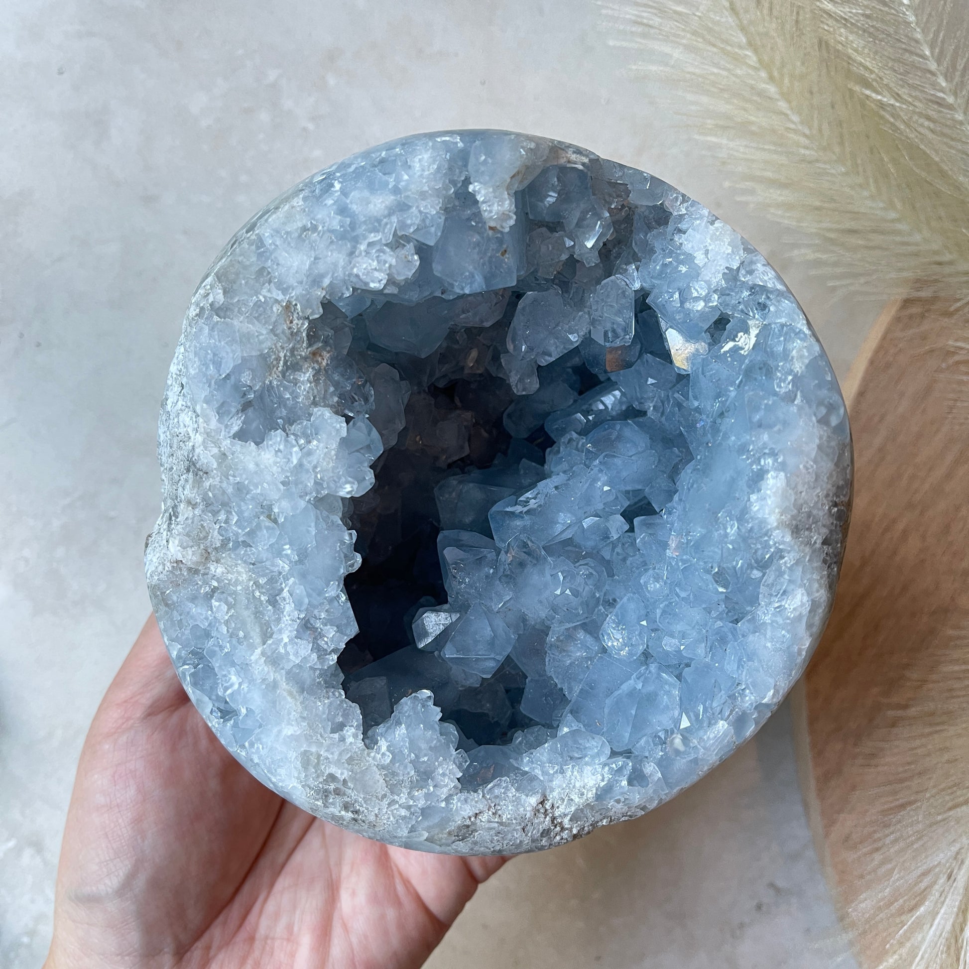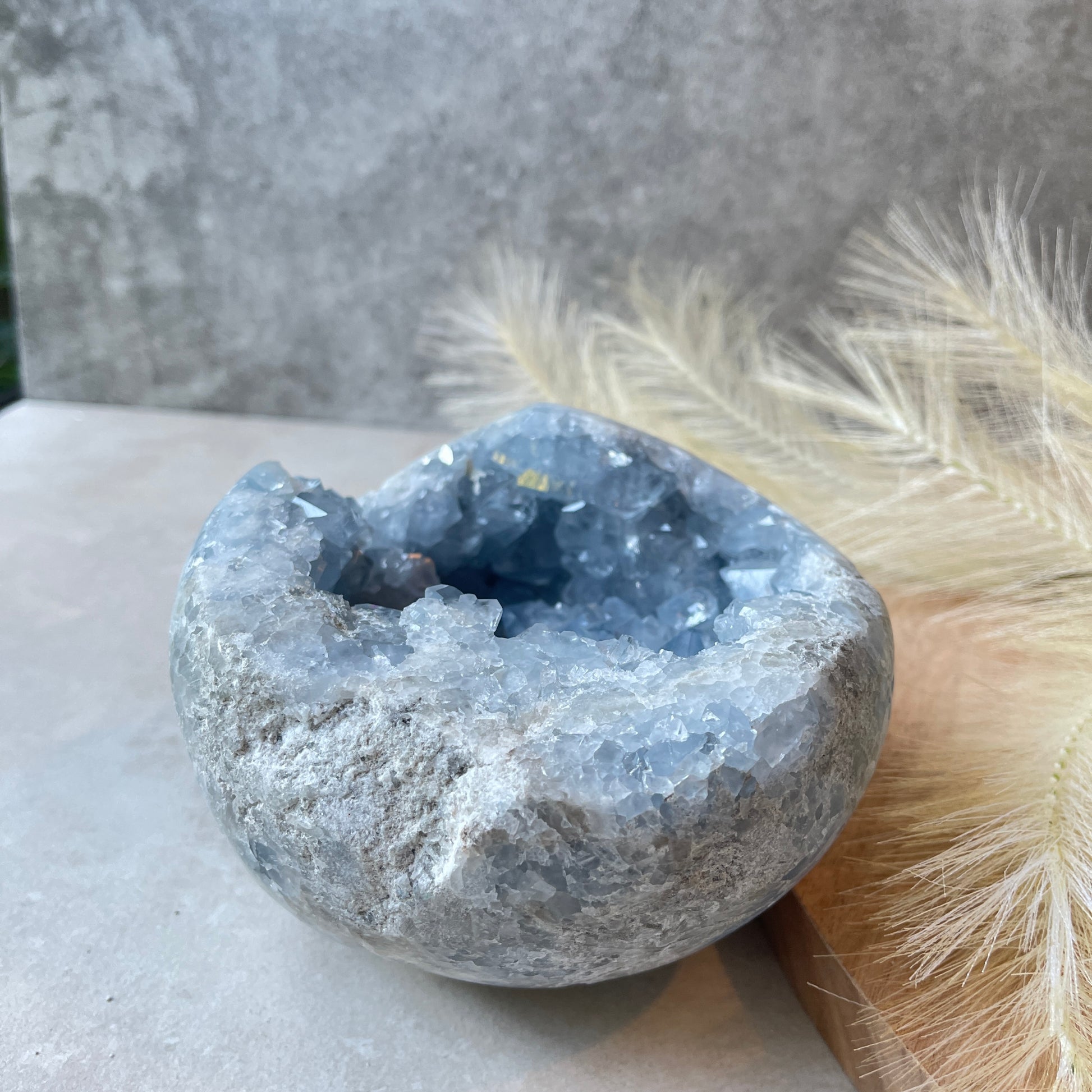 Celestite or also known as Celestine is a dreamy blue colour. This crystal is a peaceful spiritual stone that has links to our inner guardian angels and used to assist with communication. It is a gentle and soothing stone that can guide you to light and love. This crystal has calming energies which is ideal in bedrooms or in living areas. This is a soft stone physically and energetically with a hardness of 3 - 3.5. Care should be taken handling this crystal as it can crumble.