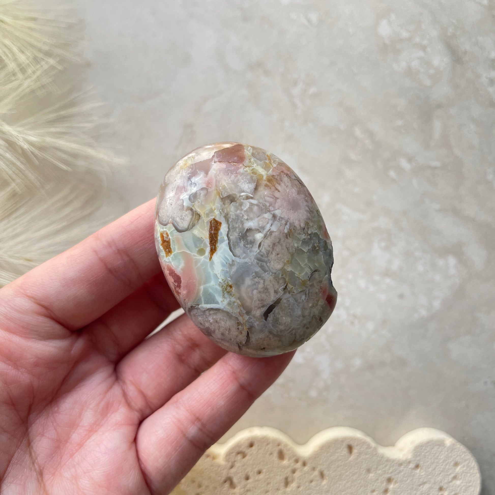 Flower Agate Palm Stone