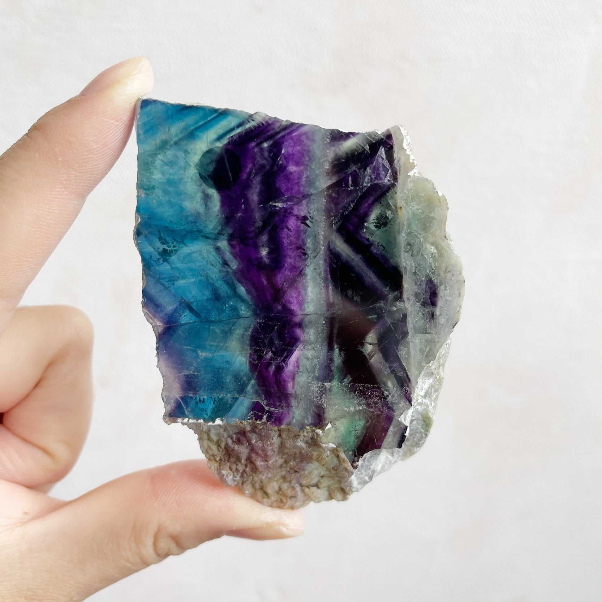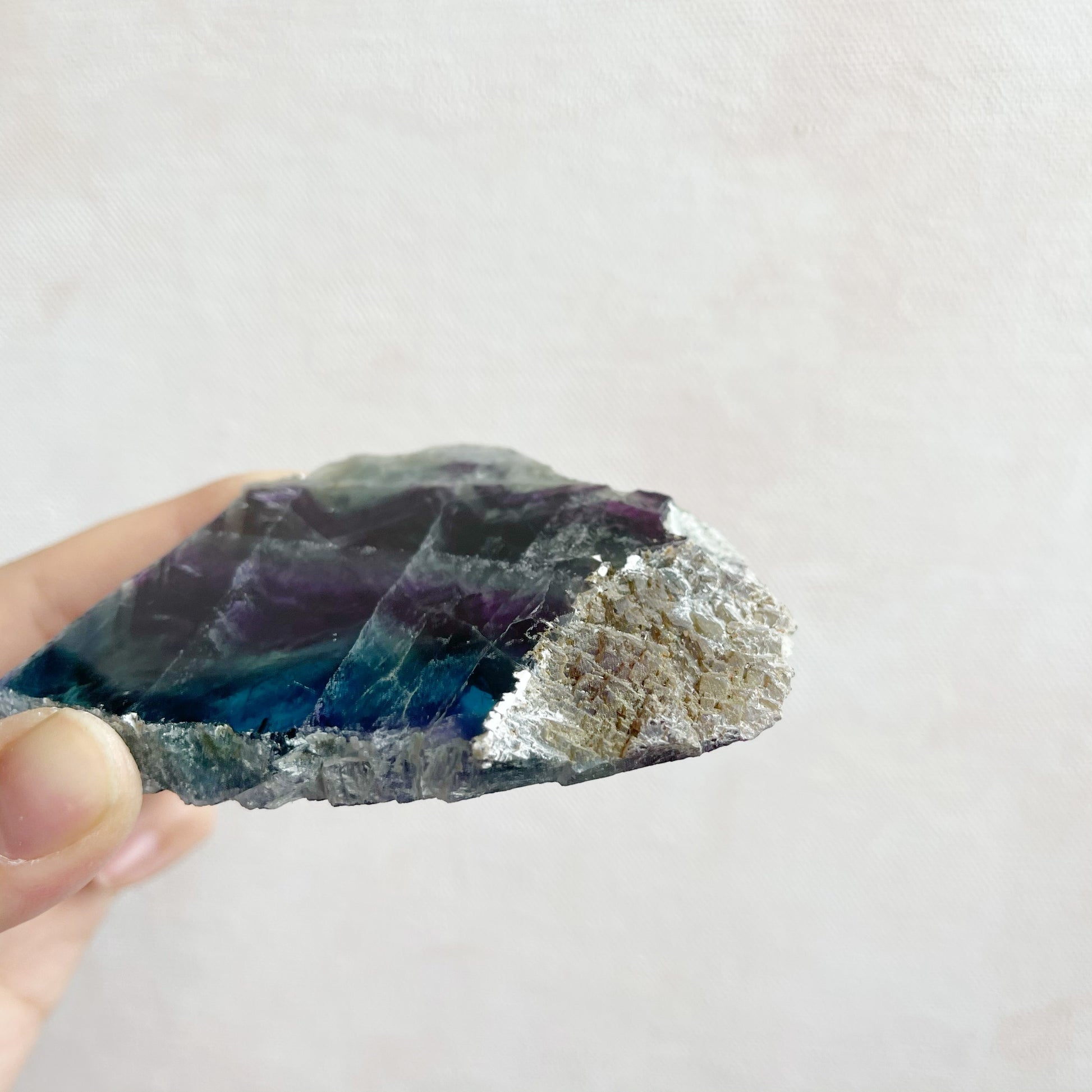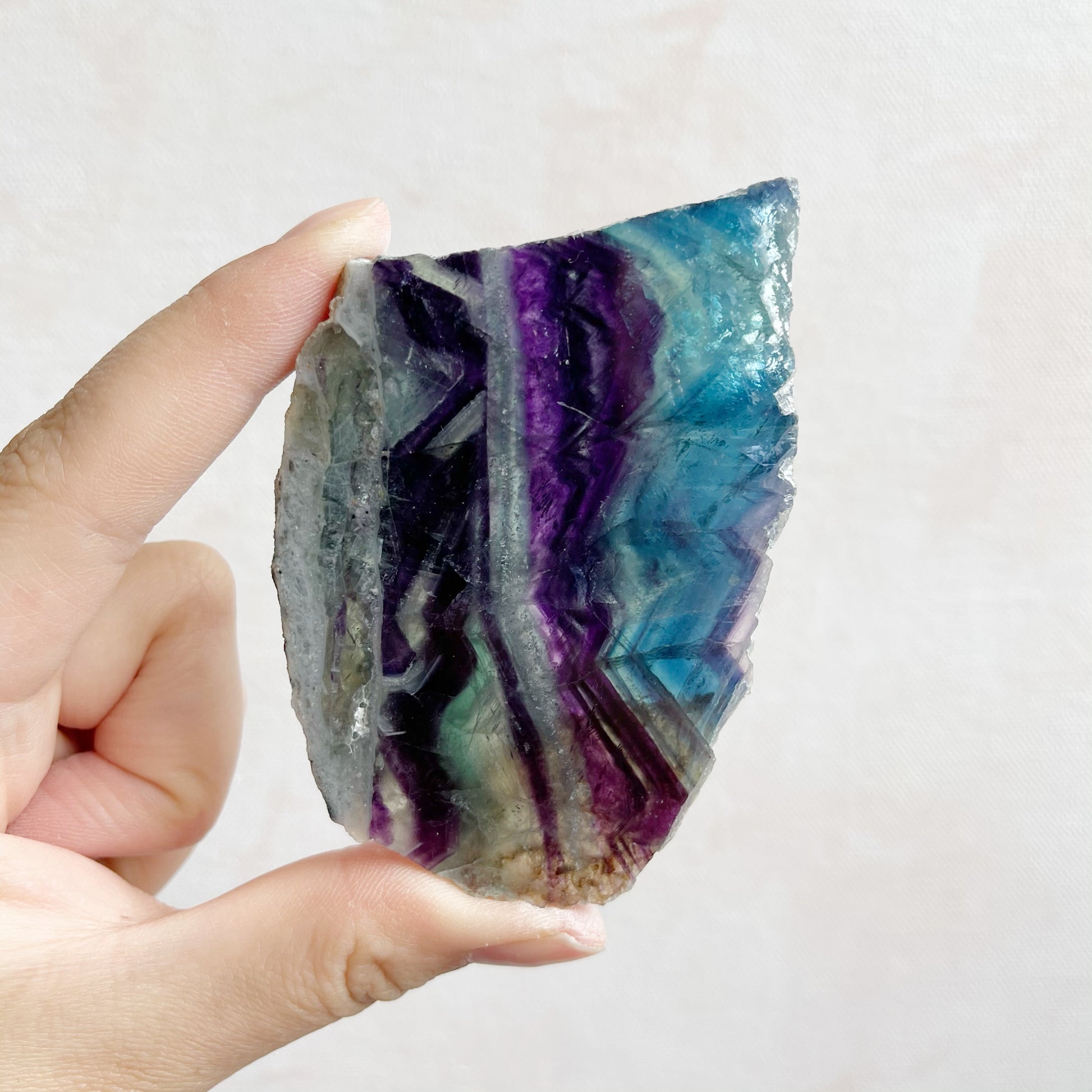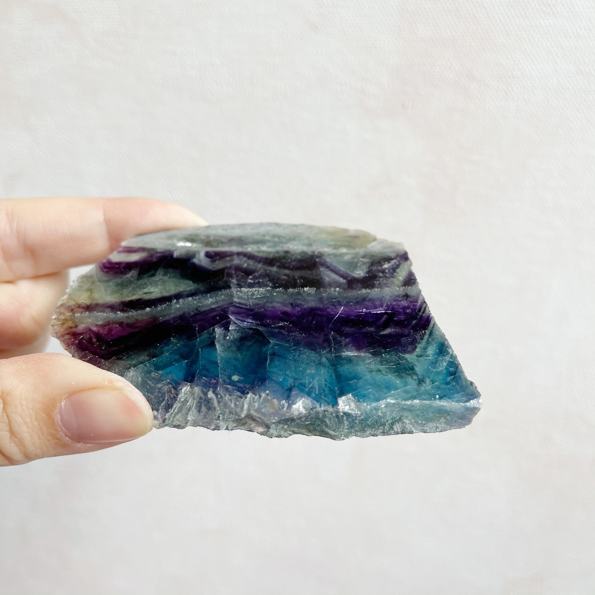 You will receive the crystal pictured. This is a natural piece of Fluorite. Both flat sides have been polished and the edges left natural. A reminder that it may display natural marks, fractures, pits and other inconsistencies which are not considered flaws but part of the natural crystal.