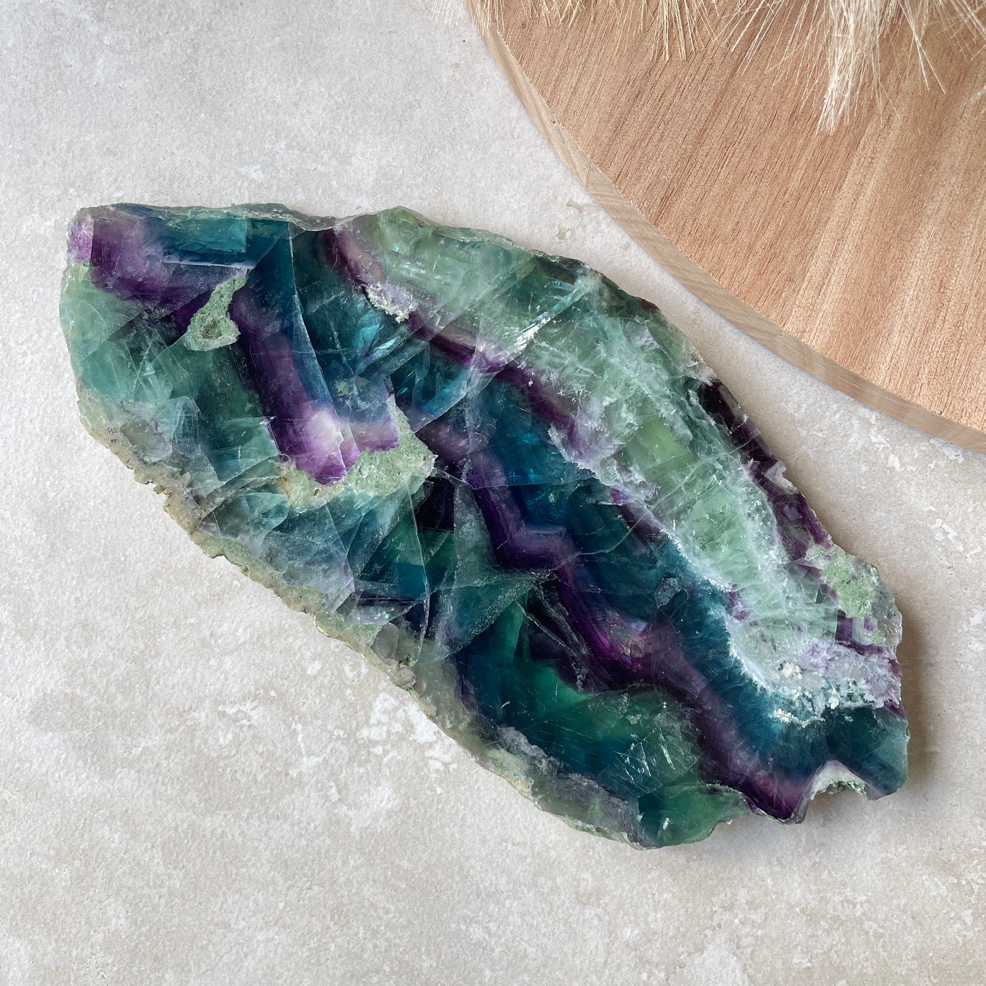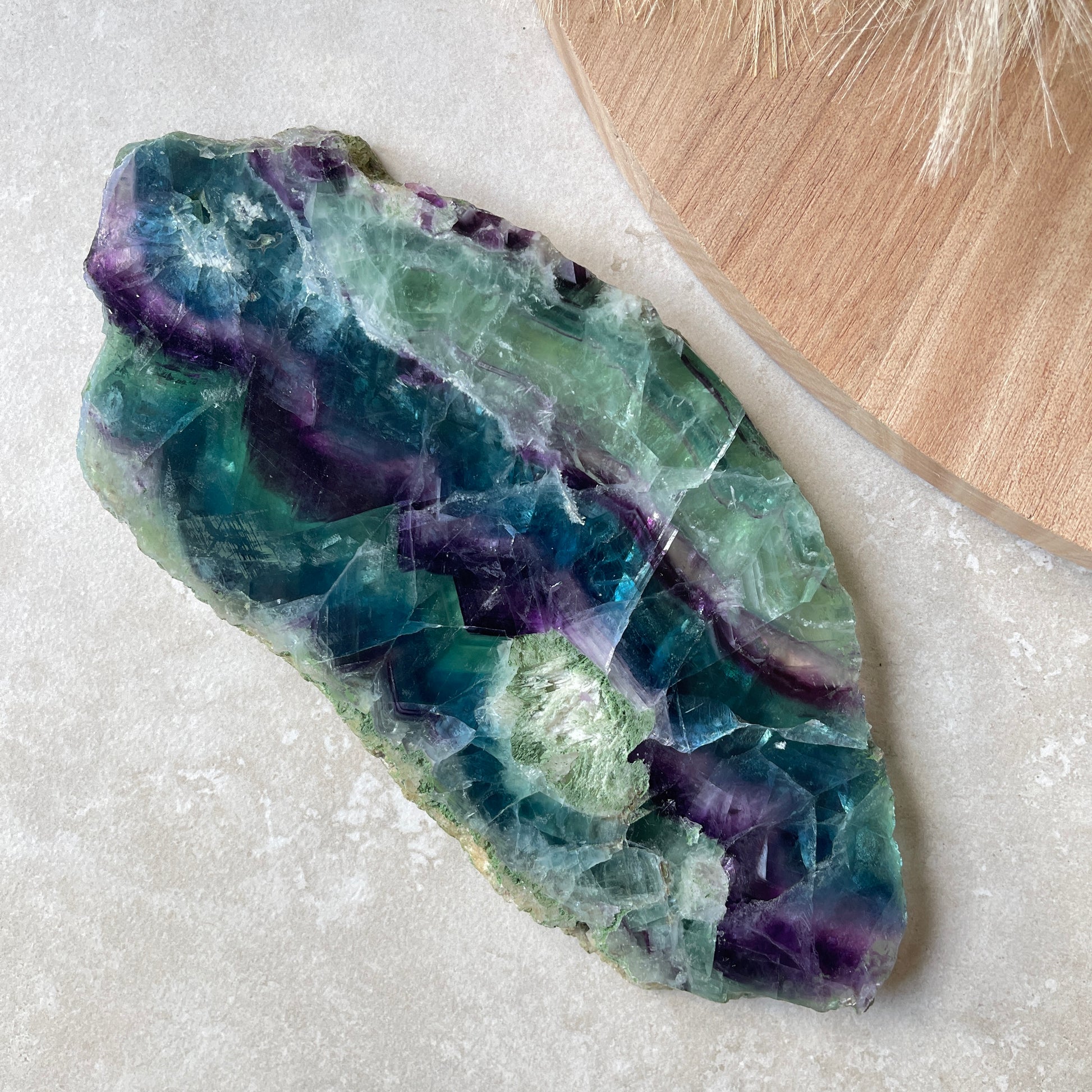 You will receive the crystal pictured. This is a natural piece of Fluorite. Both flat sides have been polished and the edges left natural. A reminder that it may display natural marks, fractures, pits and other inconsistencies which are not considered flaws but part of the natural crystal.