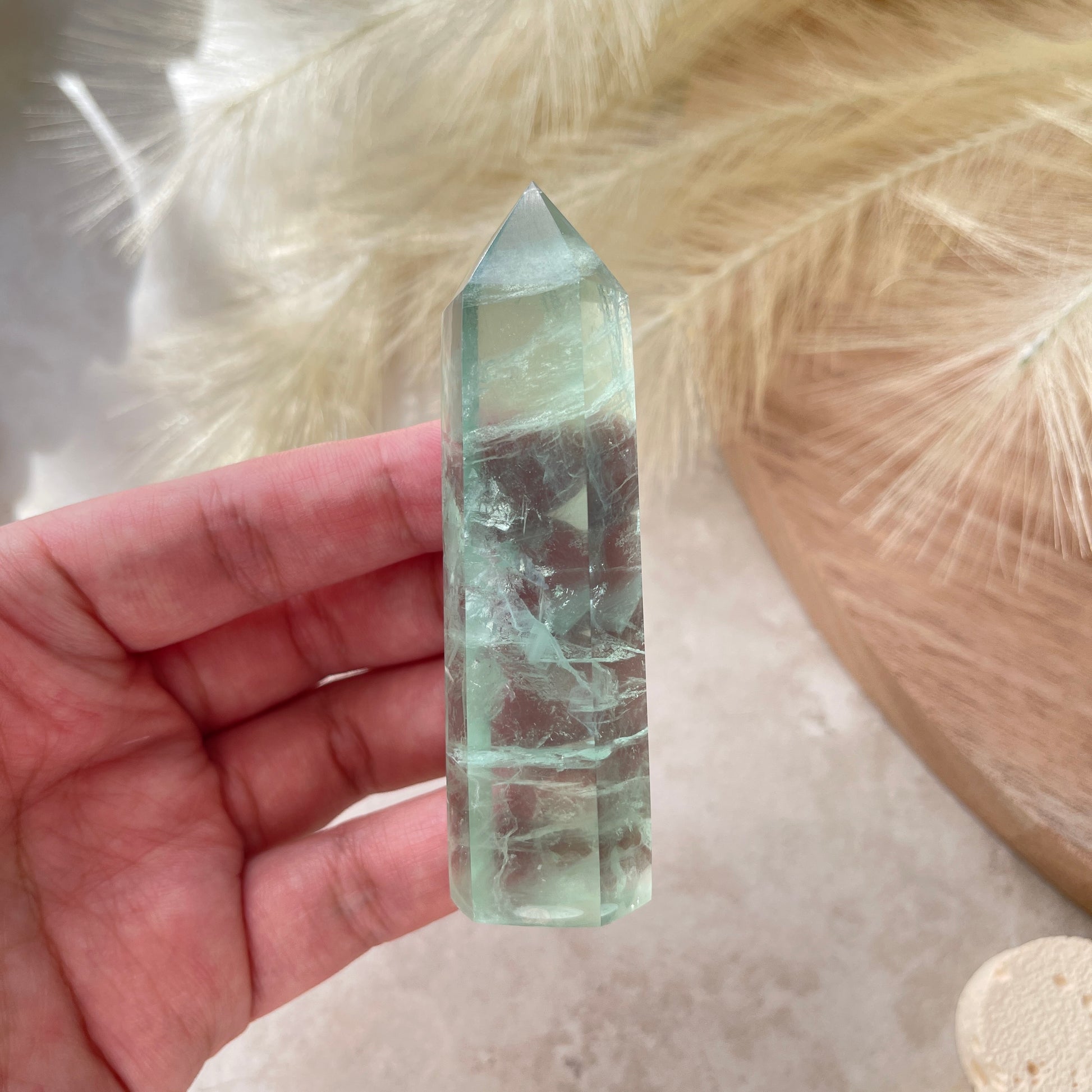 Fluorite can range from many colours such as white/colourless to green, purple, blue, pink and yellow too. It is a great crystal to carry with you daily. It can aid in clear thinking, helping you focus as it removes cluttered thoughts and confusion. Useful for those who are disorganised and want to increase their productivity. Keep a piece of fluorite on your desk where you study or are working. Fluorite also cleanses and purifies the mind and body, dispelling negative energies, stress and body pains, tensions and inflammation.