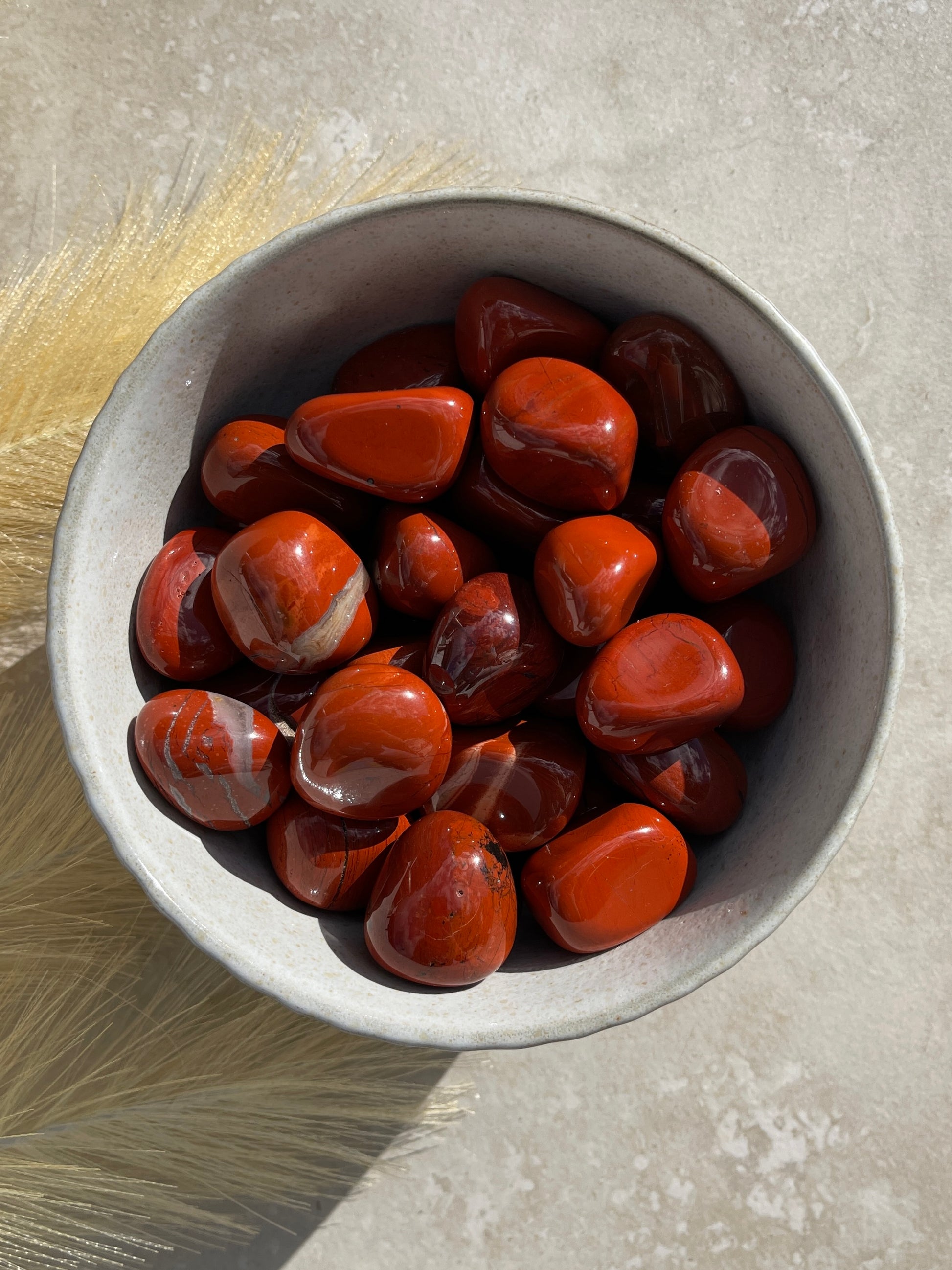 Jasper stone is a nurturing stone offering stability, protection and grounding. A supportive stone that can be used during illness or after a traumatic event. Jasper is a great stone to assist with cutting ties, ending and letting go of people and situations that no longer serve your highest good. It helps with making it more gentle and protects your energy during the process. Jasper is an opaque stone found in many different colours with or without stripes and specks. Red Jasper has Earthy vibrations and strong connections to Mother Earth. Information of Jasper from Judy Hall's The Crystal Companion.