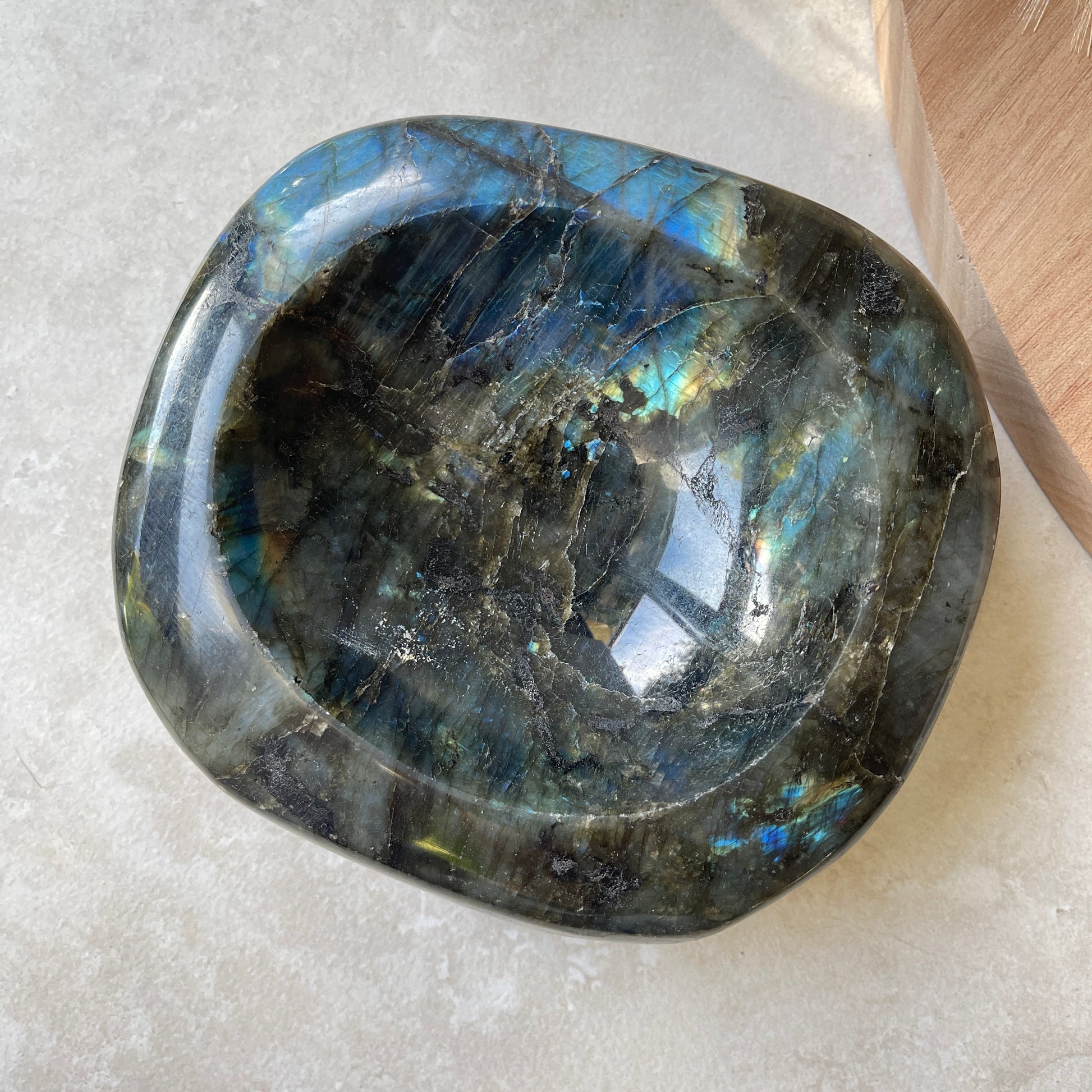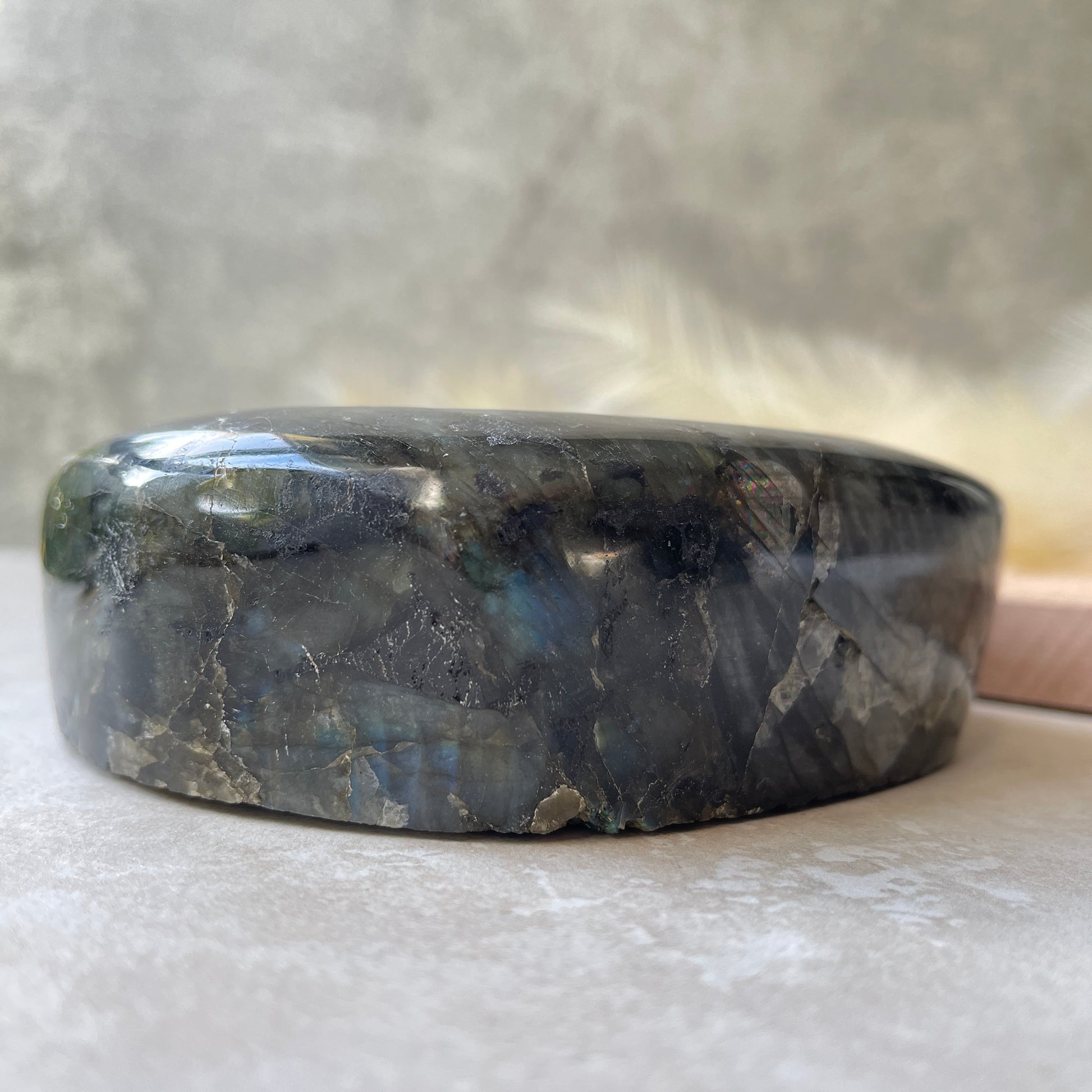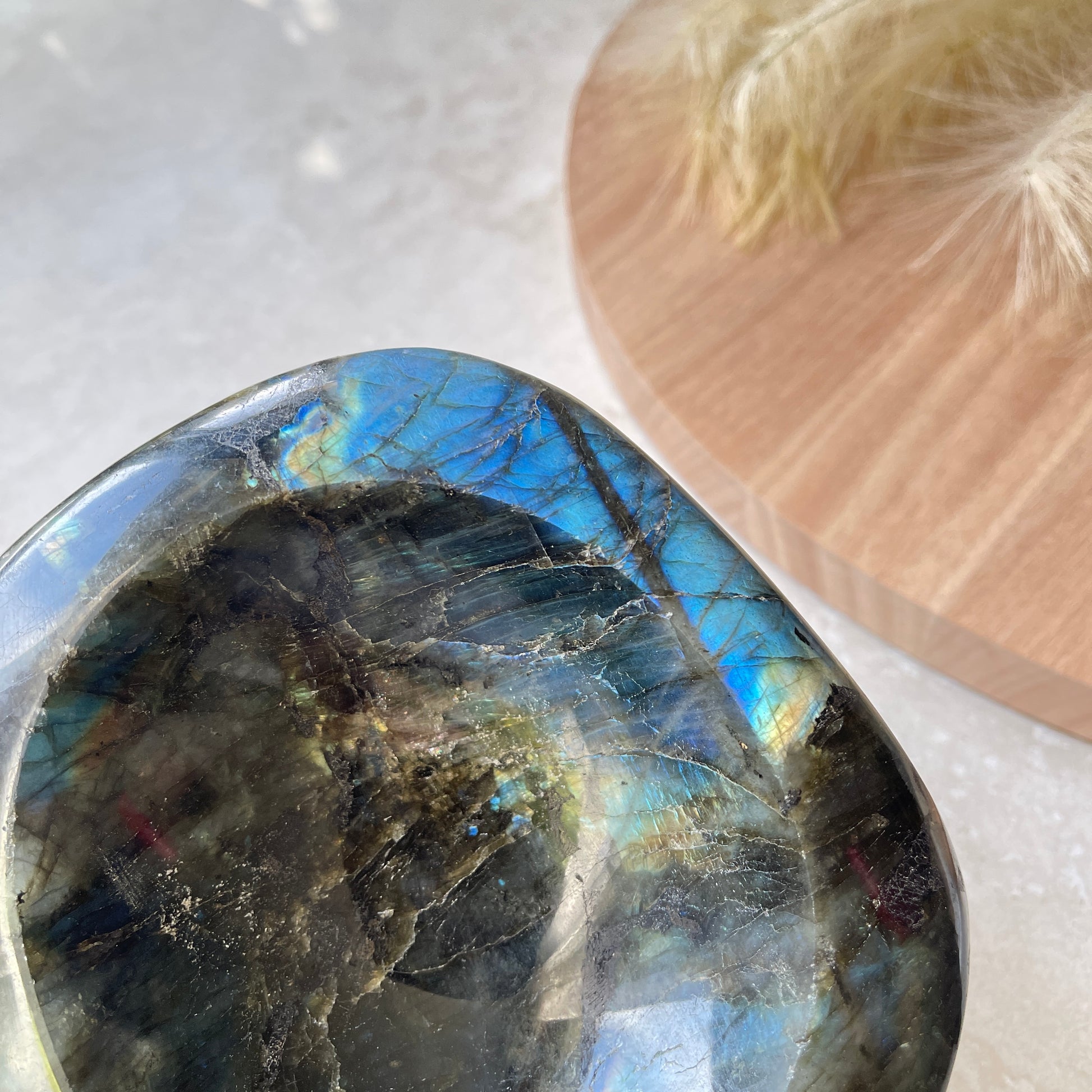 Labradorite is a mystical crystal that connects us to spiritual energies and magic. It provides protection to the aura and deflects unwanted energies. Labradorite enables us to use our intuition. It calms the mind and energises the imagination to help us have insight and wisdom to situations.