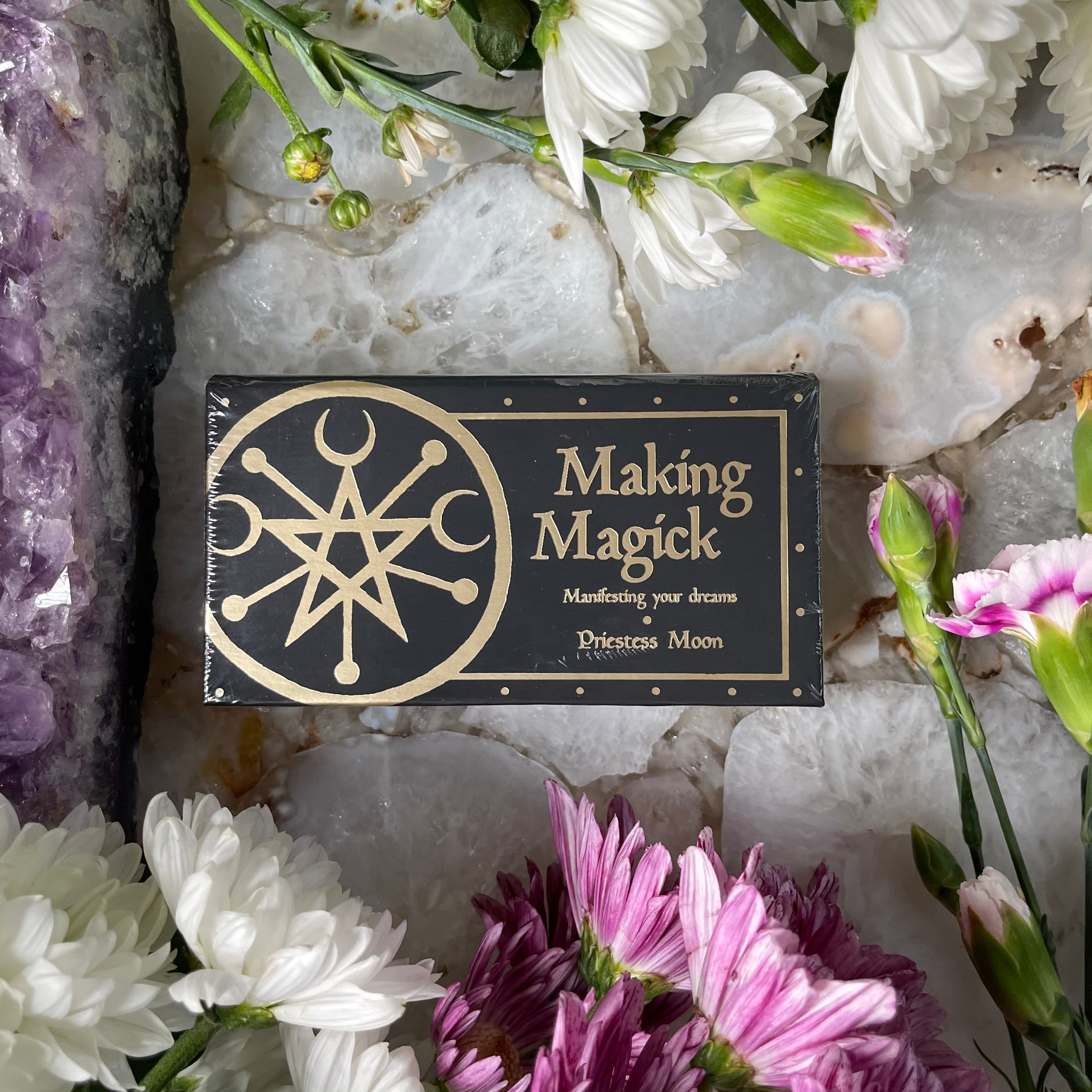 Symbols are a universal language, and many are hundreds or even thousands of years old and have been inspiring humankind for generations. This 40-card mini deck features a combination of medieval amulets, Celtic charms, alchemical glyphs, and channeled sigils from Priestess Moon’s guides and angels, as well as an explanation of how each symbol can help you. Making Magick is a potent tool for manifesting your desires whether they be for wisdom, protection, healing, love, fortune, insight, or whatever you’re dreaming of.