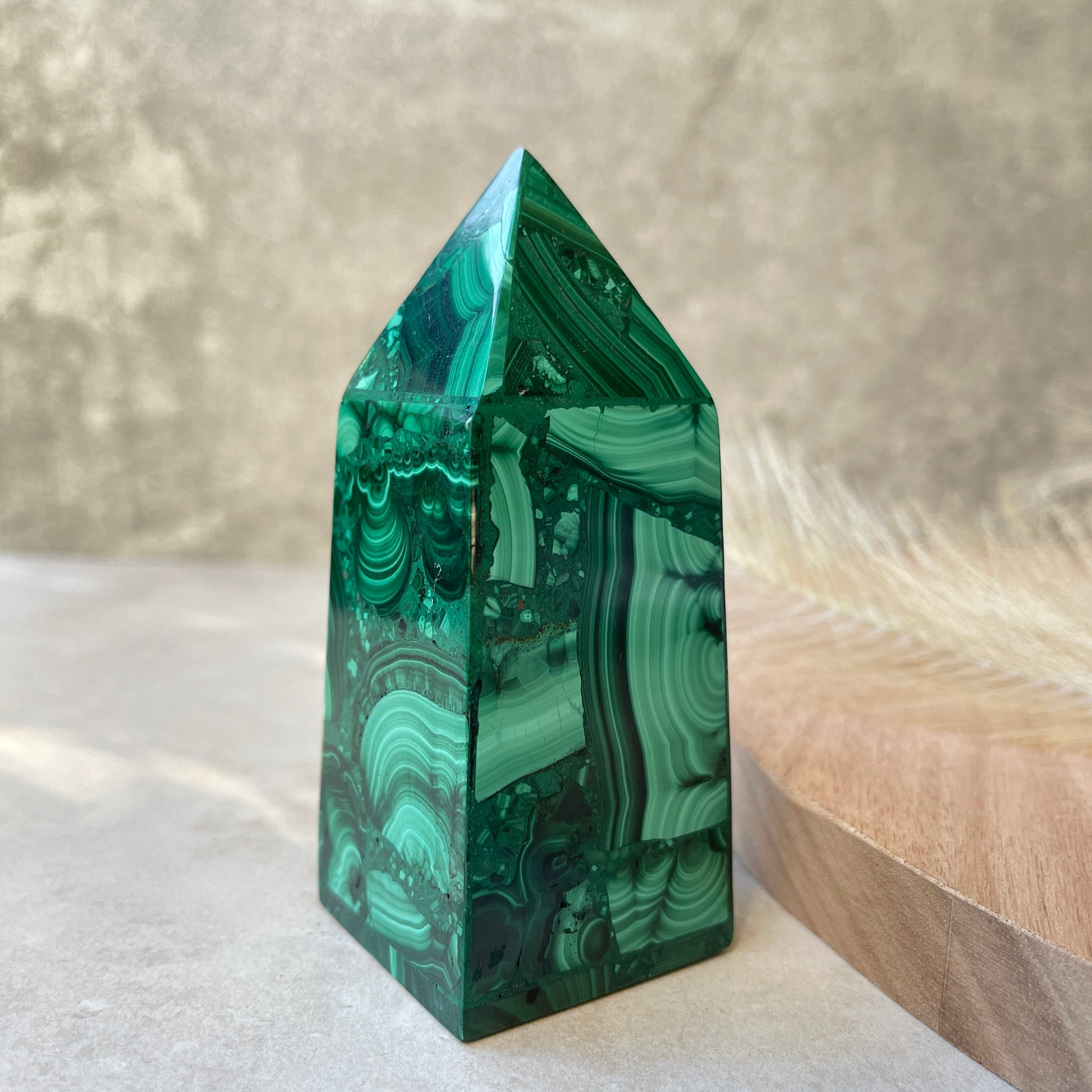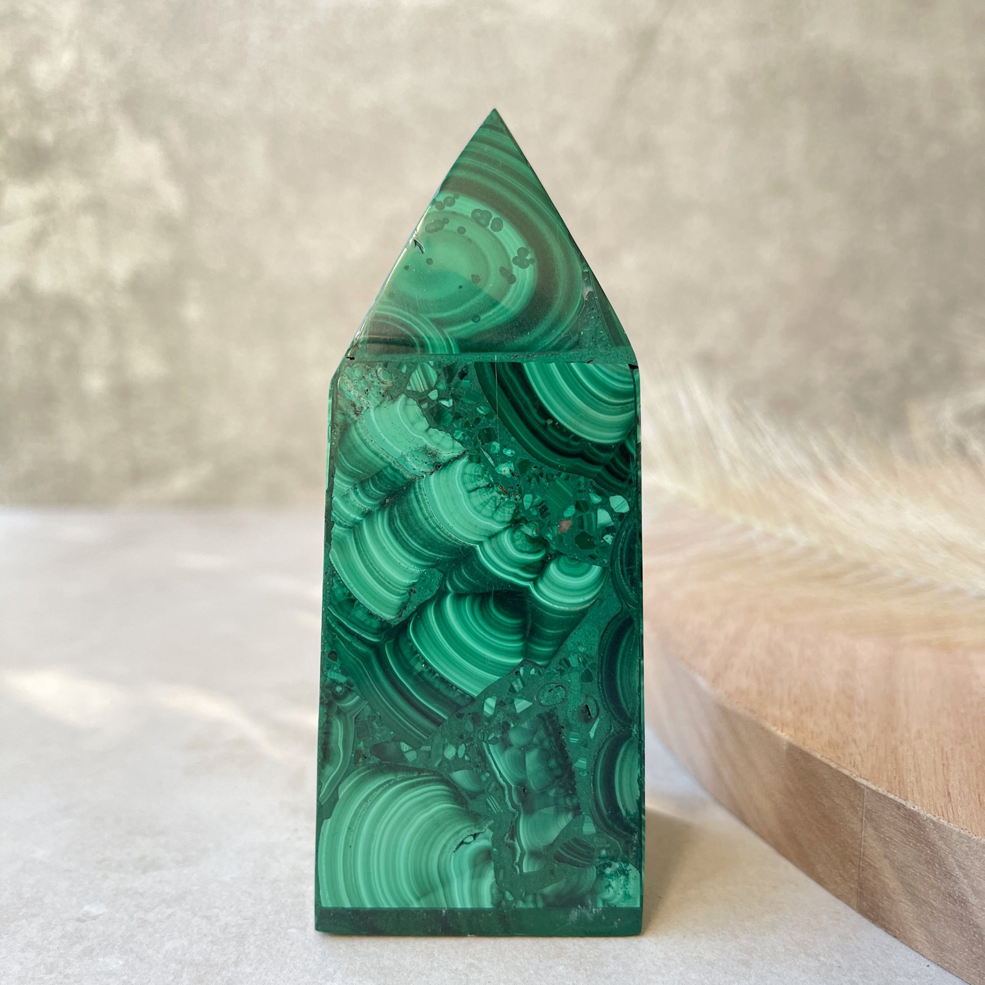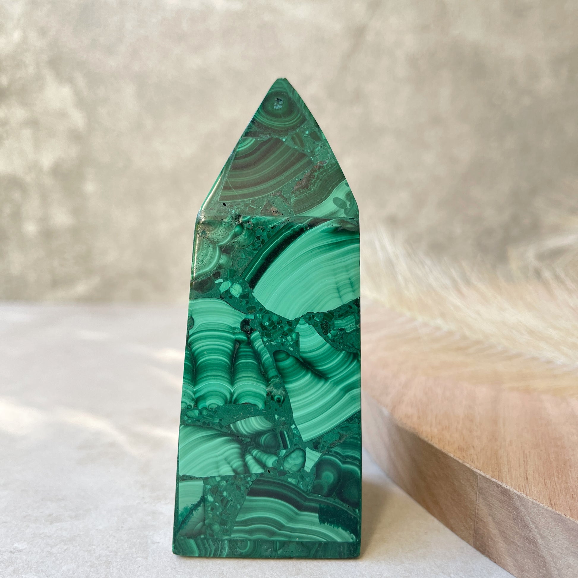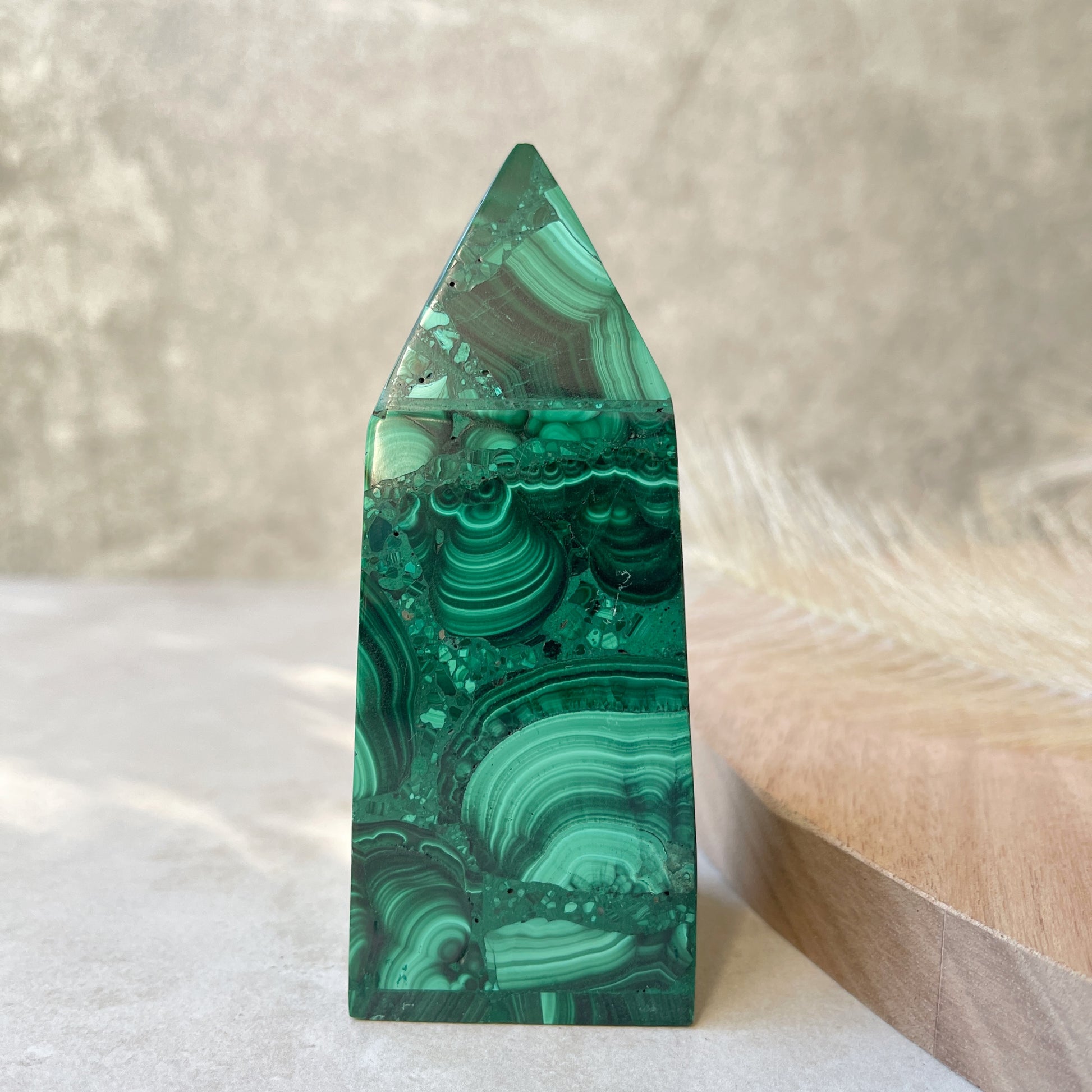 Malachite is an extremely powerful stone, it can be used for protection, healing and transformation. It helps heal the heart from matters of love and emotional pain. Wear or carry Malachite as it prevents negative patterns and indulgences.