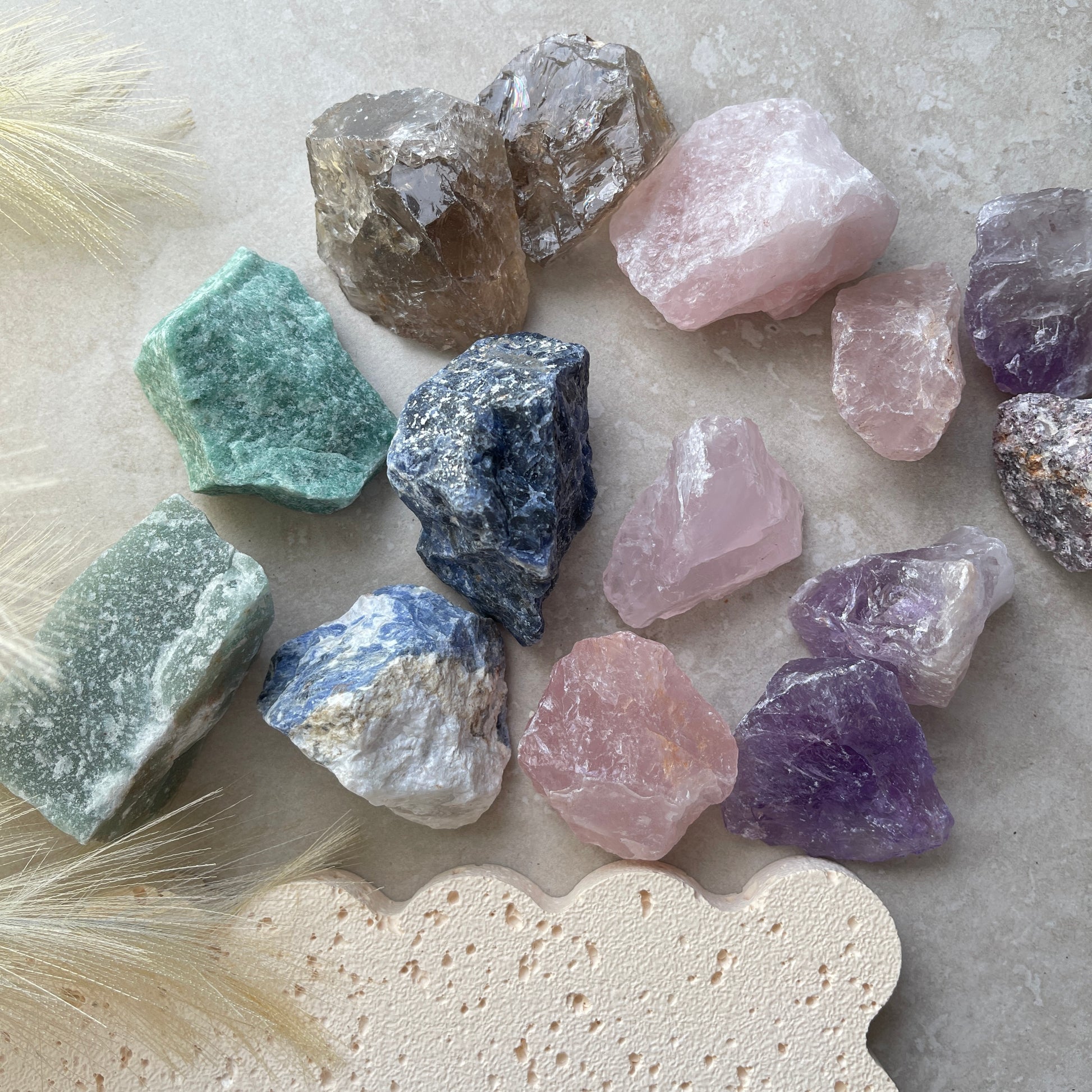 You may receive small or larger pieces which will affect the quantity in each lot. Photos are of the different type of crystals you will receive. Minimum each bag will contain 500g of roughs.