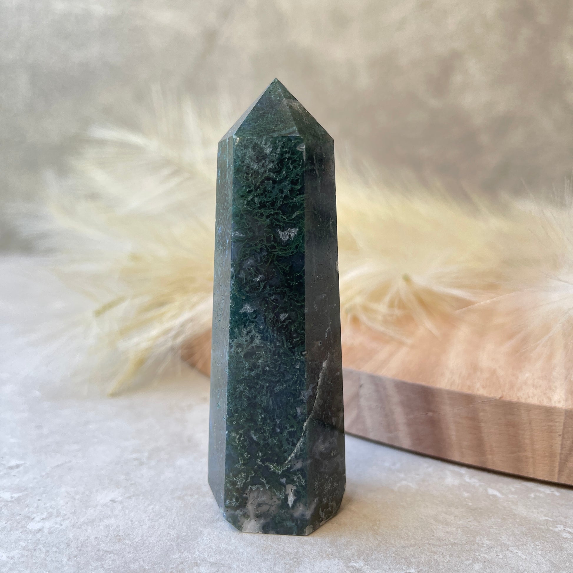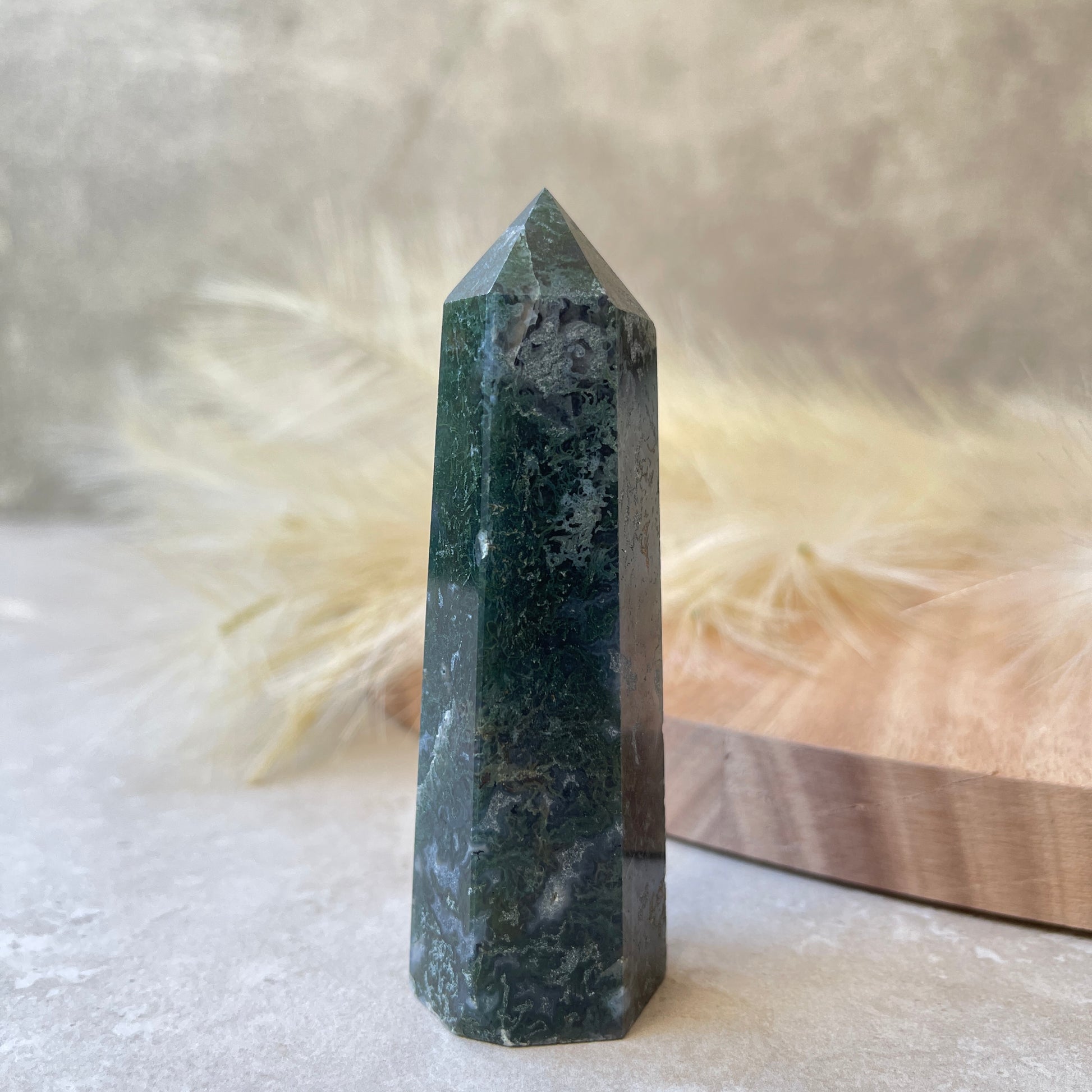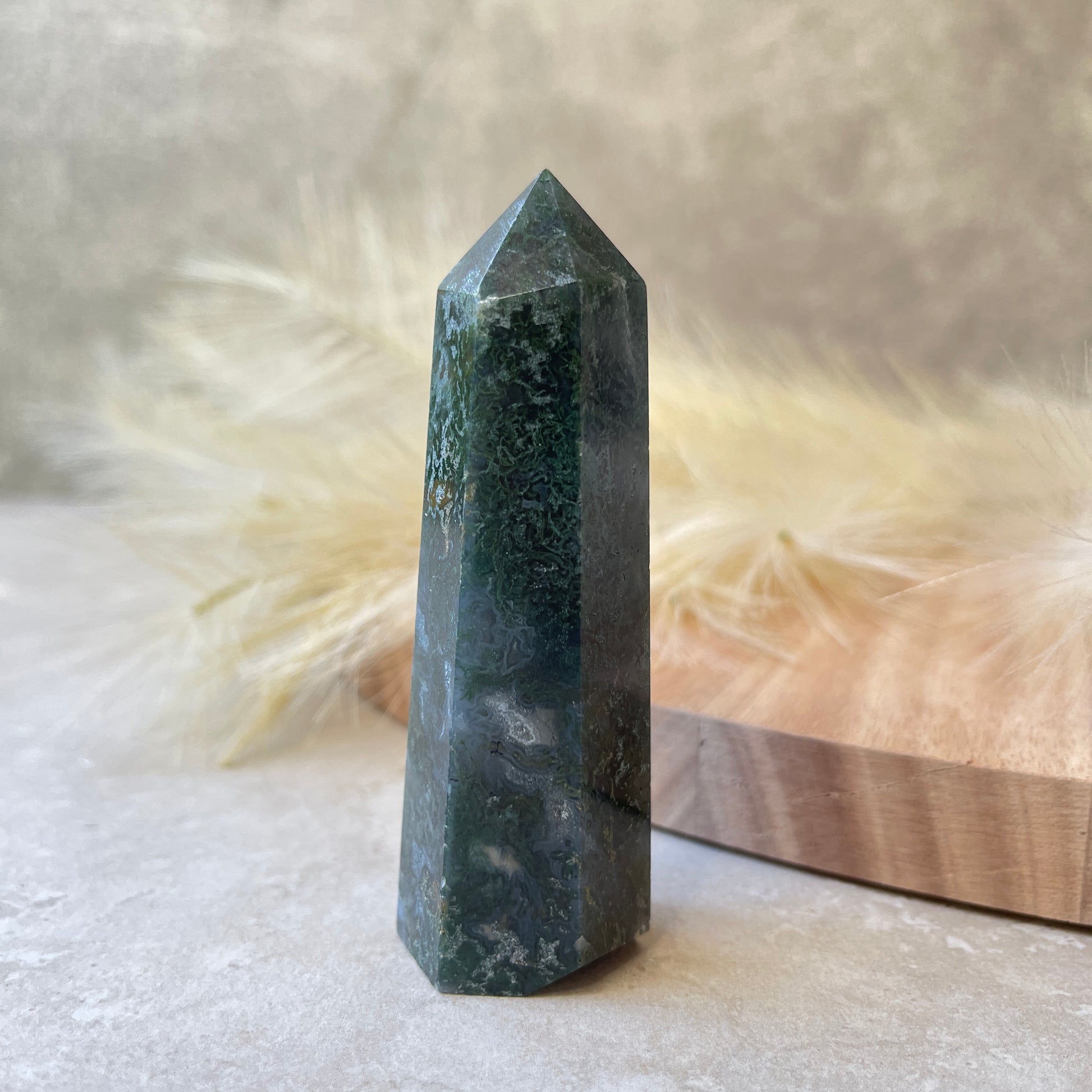 Moss Agate is a type of chalcedony formation and despite it being named an Agate, it doesn't display the traditional banding patterns seen in most Agate crystals. Instead the mineral composition and inclusions create the green moss like patterns in the stone. Moss Agate is said to attract abundance, wealth and prosperity. Use Moss Agate for new beginnings, it brings balance and stability. Moss Agate is calming and peaceful therefore, good for times of stress.