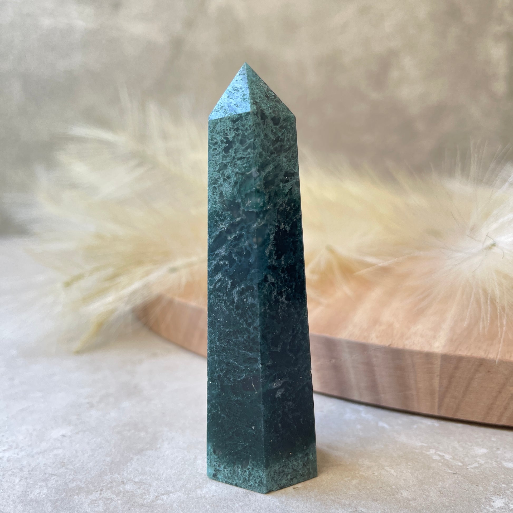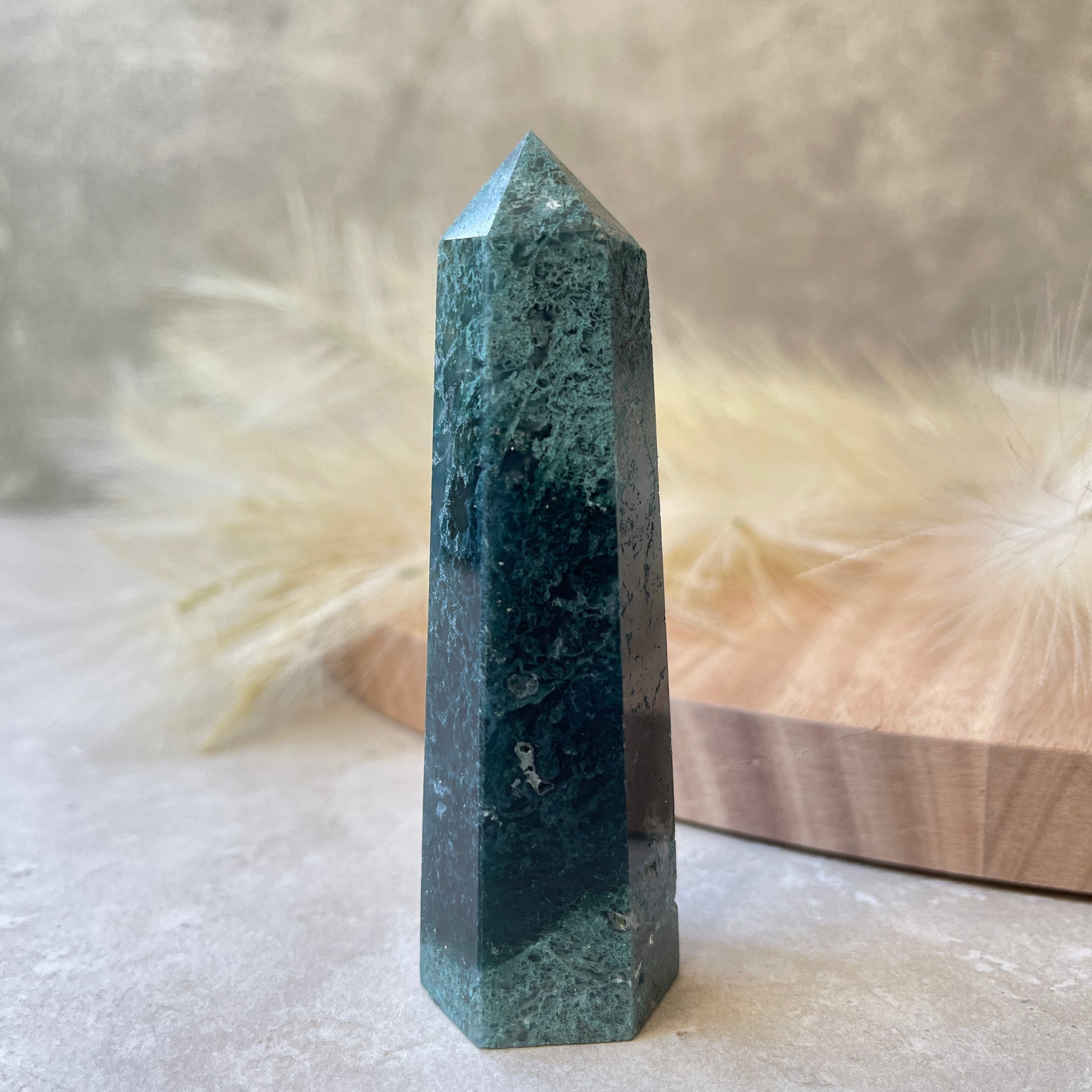 Moss Agate is a type of chalcedony formation and despite it being named an Agate, it doesn't display the traditional banding patterns seen in most Agate crystals. Instead the mineral composition and inclusions create the green moss like patterns in the stone. Moss Agate is said to attract abundance, wealth and prosperity. Use Moss Agate for new beginnings, it brings balance and stability. Moss Agate is calming and peaceful therefore, good for times of stress.