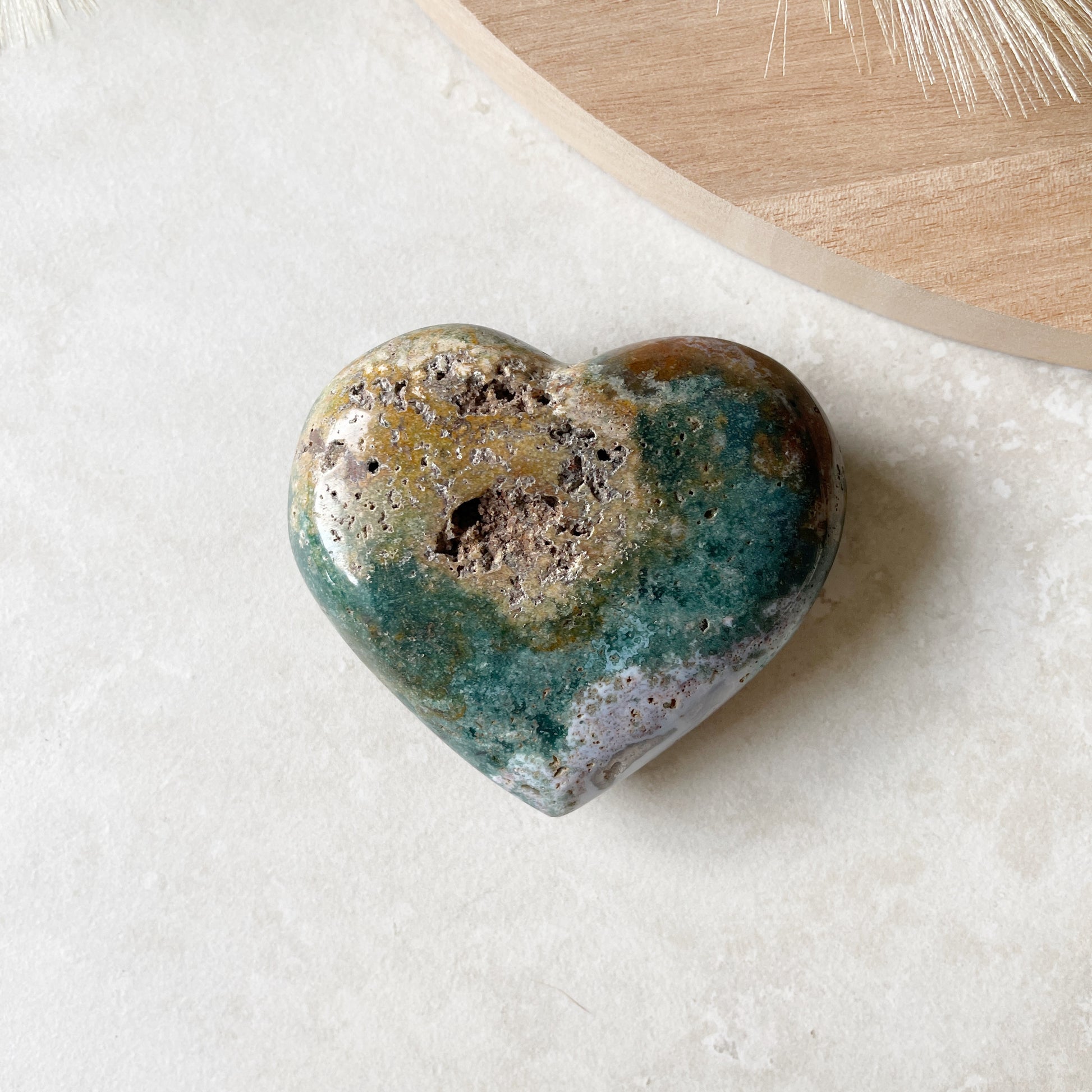 Ocean Jasper is a joyful uplifting stone found in Madagascar. It has a various range of colours and wild patterns making each stone unique and no two the same. Colours range from red, yellow, pink, green, blue, white and black. Hold and meditate with Ocean Jasper to let go of unwanted thoughts and calm the mind. It reminds you to go with the flow, focus on day by day, be in and value the present and not worry about the future or past.