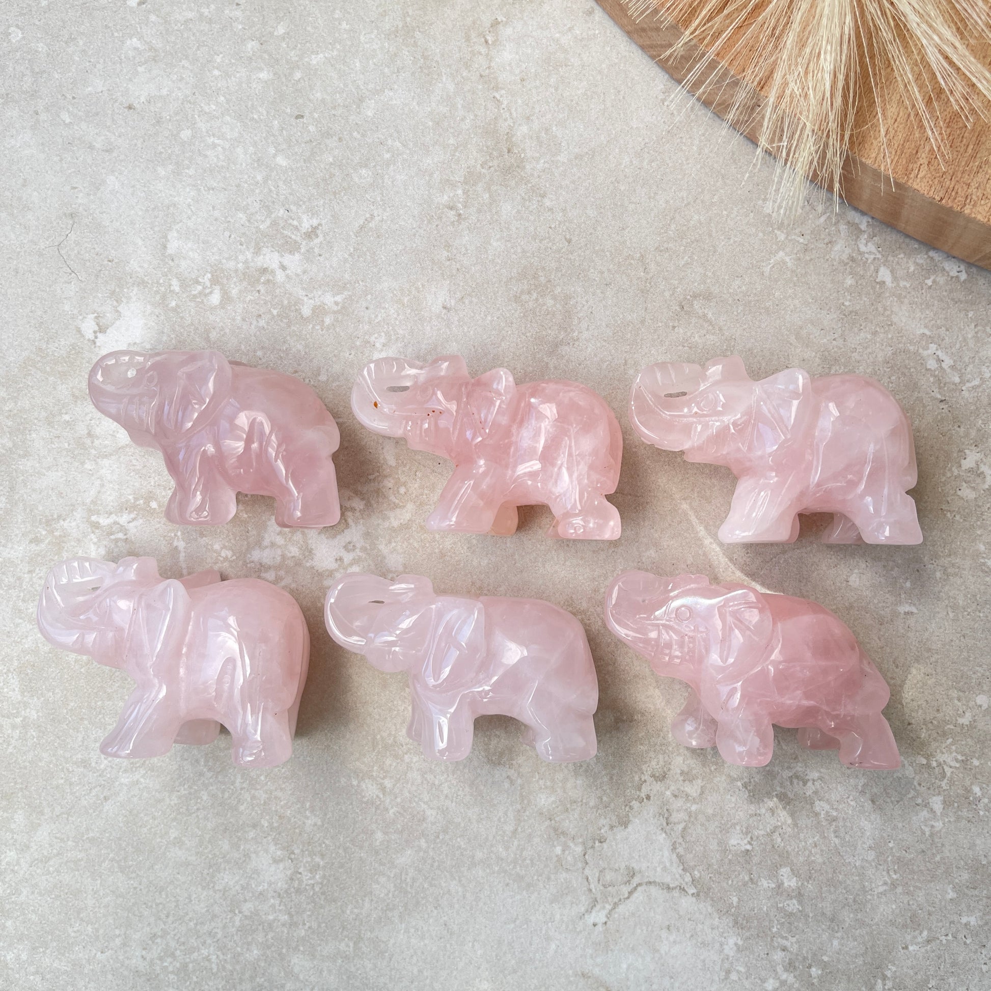 You will receive one Rose Quartz Elephant. Chosen intuitively for you, please note each piece is natural and may vary slightly. Reminder this is a natural crystal, marks and inconsistencies are not flaws but are part of the crystal.