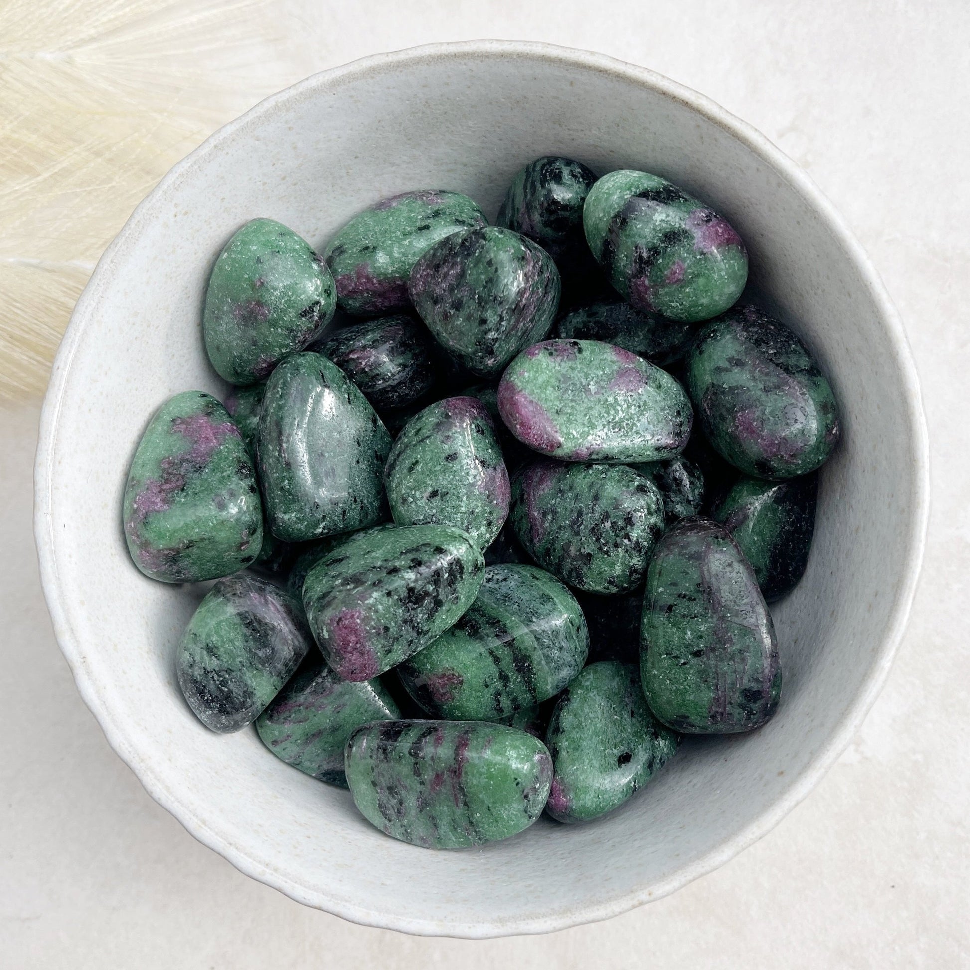 Ruby represents passion and love. Whilst the green Zoisite represents growth and fertility. Overall, Ruby Zoisite is a stone that supports personal growth, it encourages you to strive for more and set goals for the future and provides motivation to achieve your dreams. Also said to attract abundance and wealth retention. It is a powerful stone that transmutes anger and negative energy, with calming and soothing energy.
