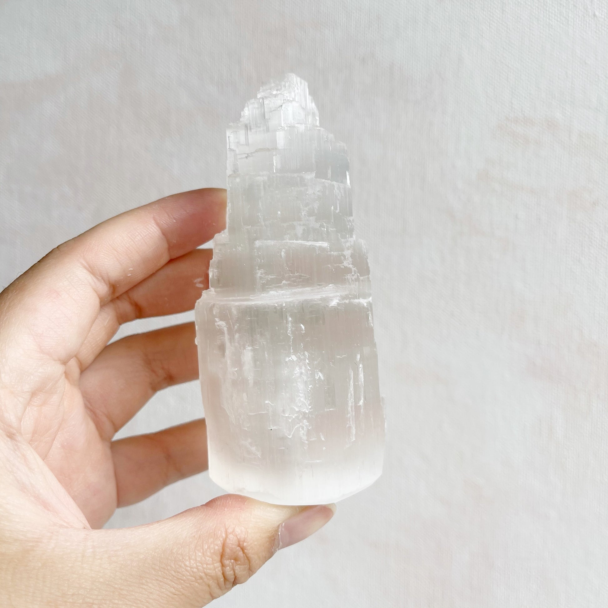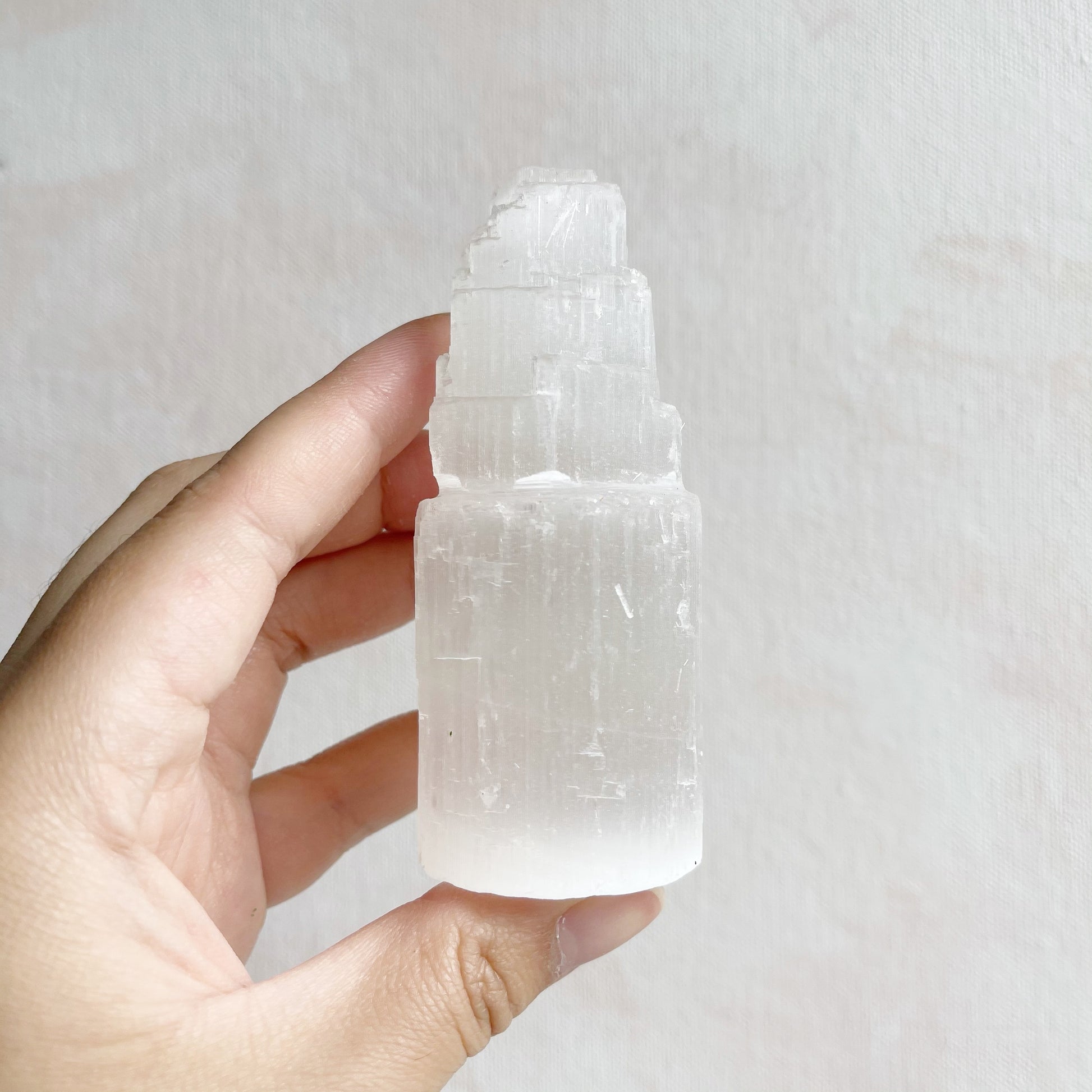 Caution Selenite can disintegrate in water. Take care as Selenite is a 'soft' crystal and has a hardness of 2 on the MOHS Scale.
