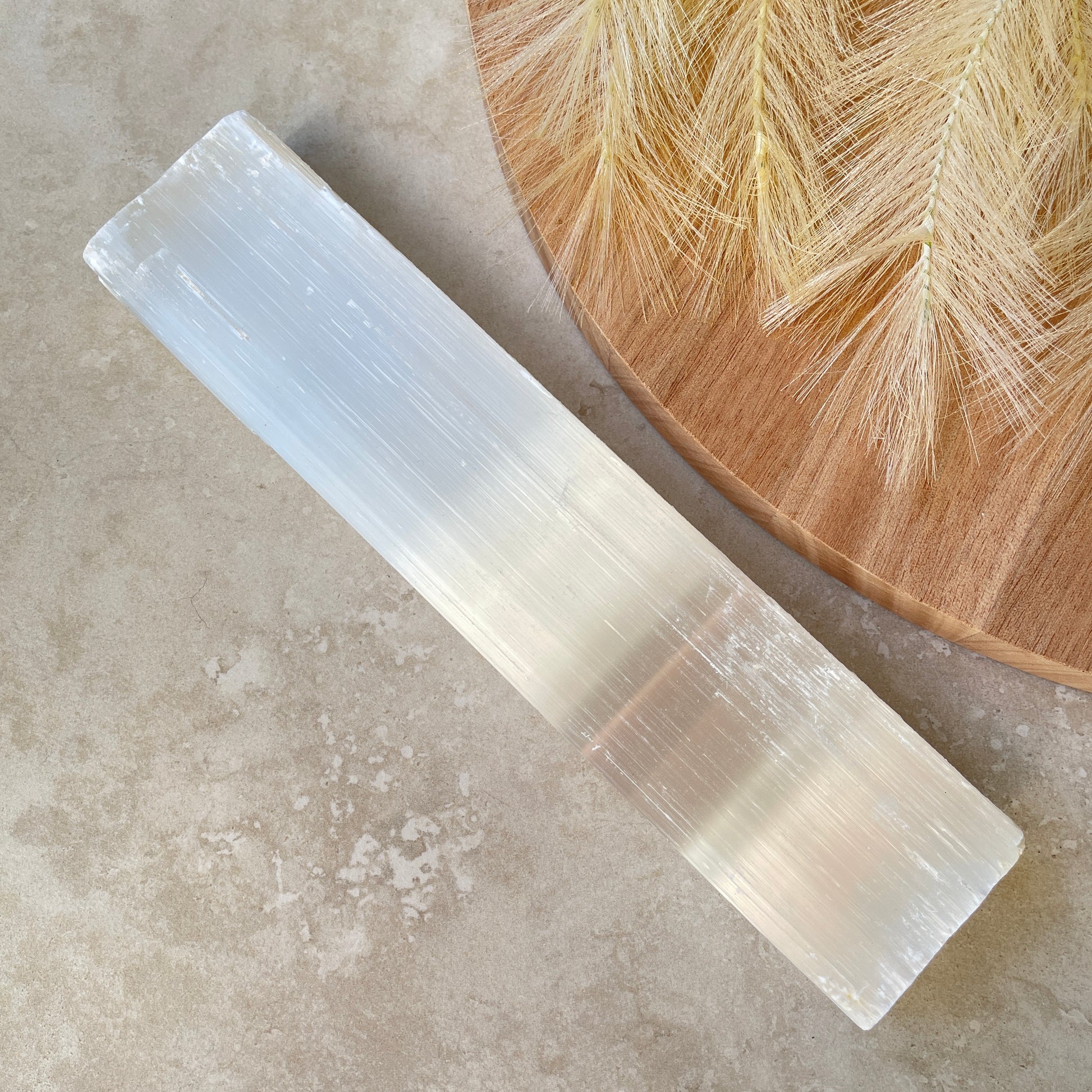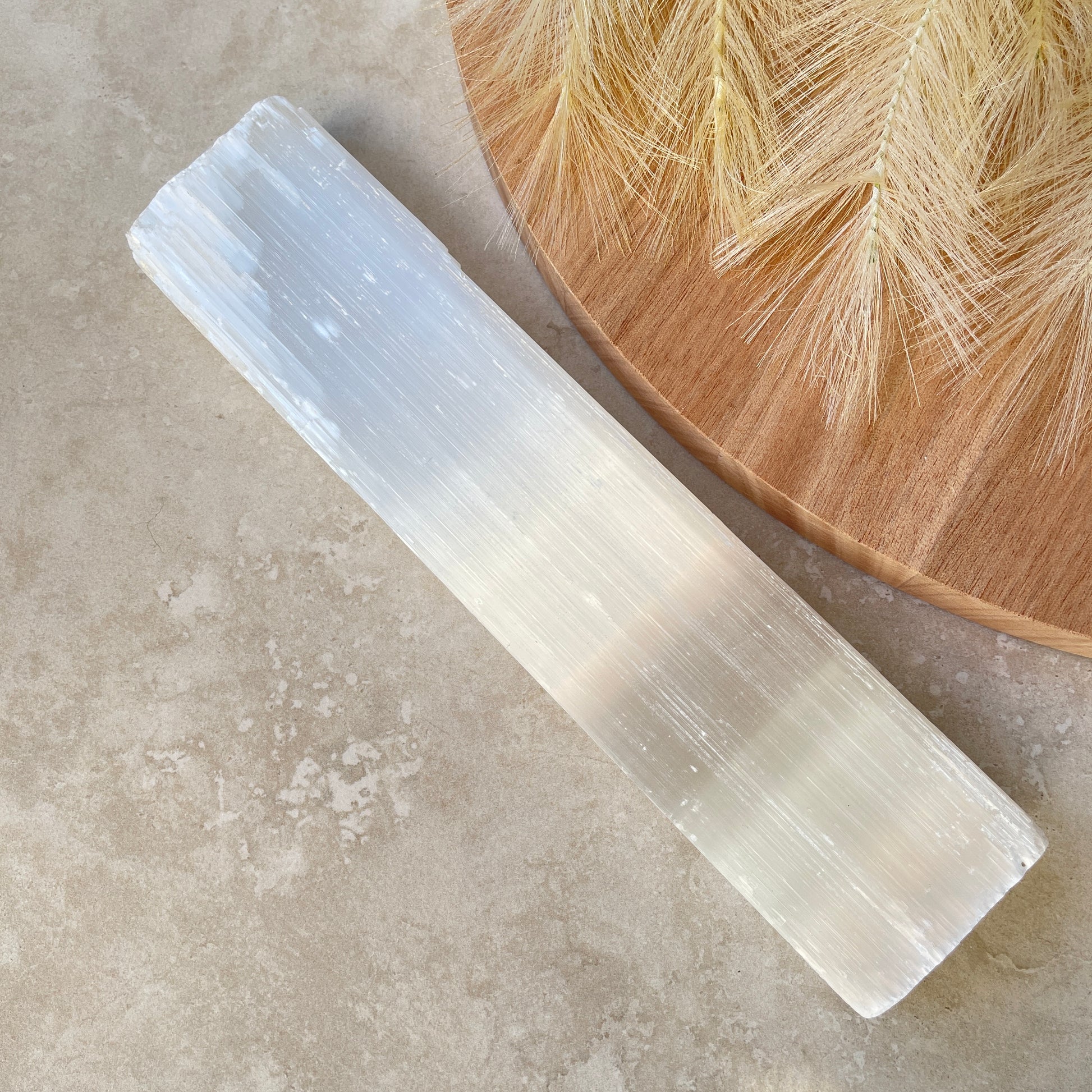 The name Selenite derived from the ancient Greeks goddess of the moon, Selene. Selenite is a high vibrational crystal that can cleanse other crystals, objects and spaces. Place crystals on top of selenite (or beside it) for a few hours or overnight, then cleanse the selenite afterwards. Selenite enhances spiritual connections to angelic communication and spirit guides. Metaphysically Selenite promotes purity and honesty, which assists in metal clarity and decision making. It also clears negative energies and blockages.
