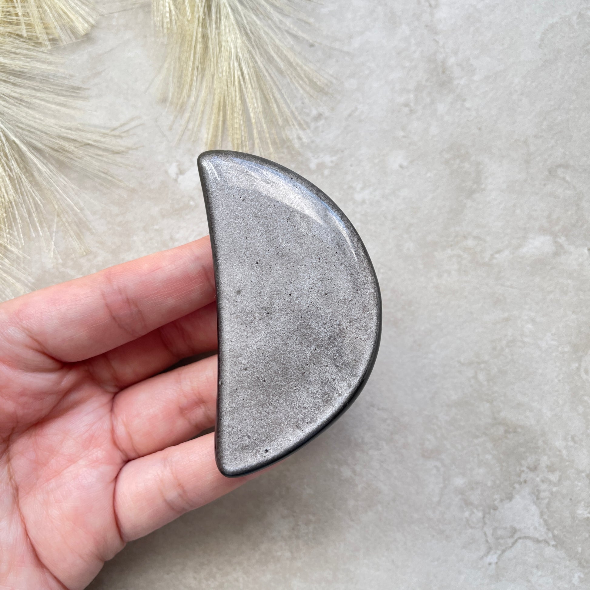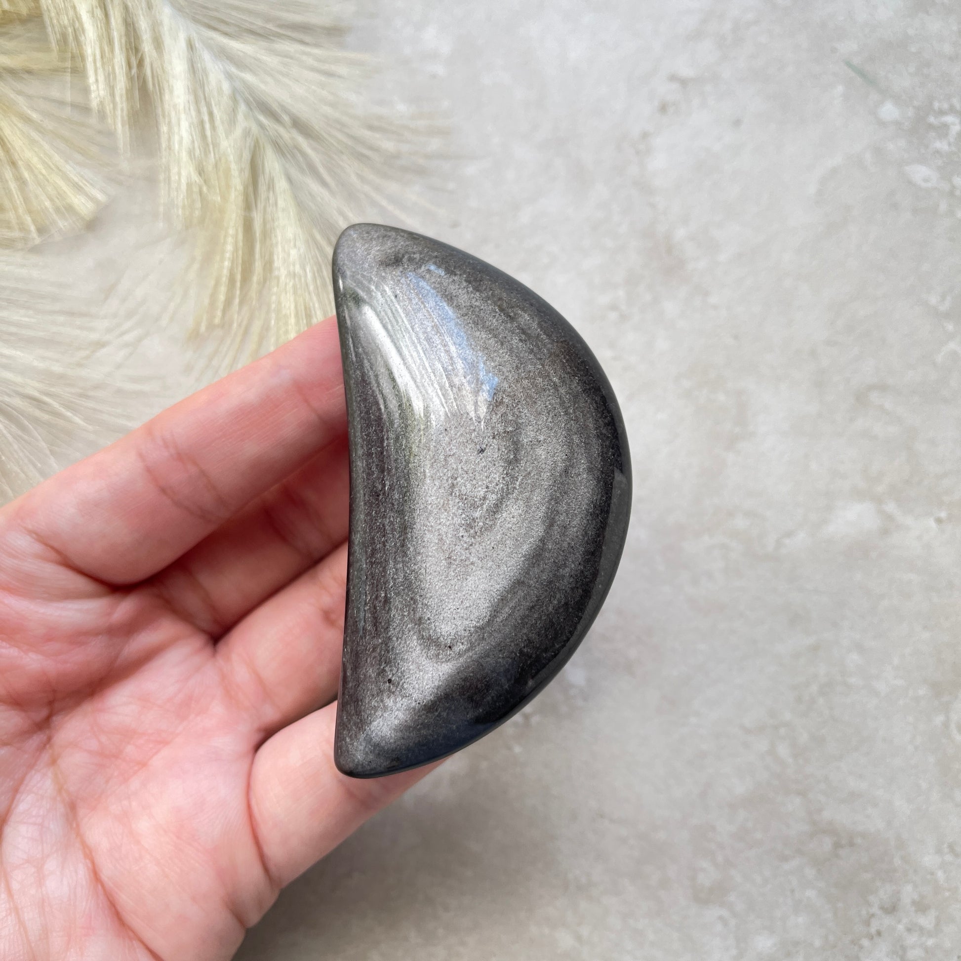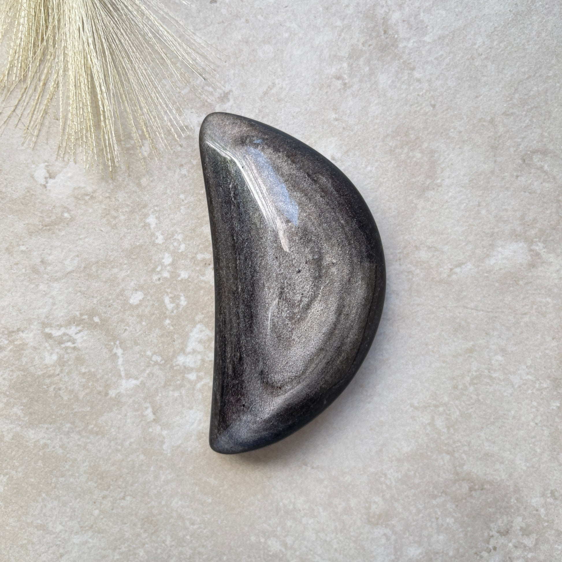 Silver Sheen Obsidian Moon Carving