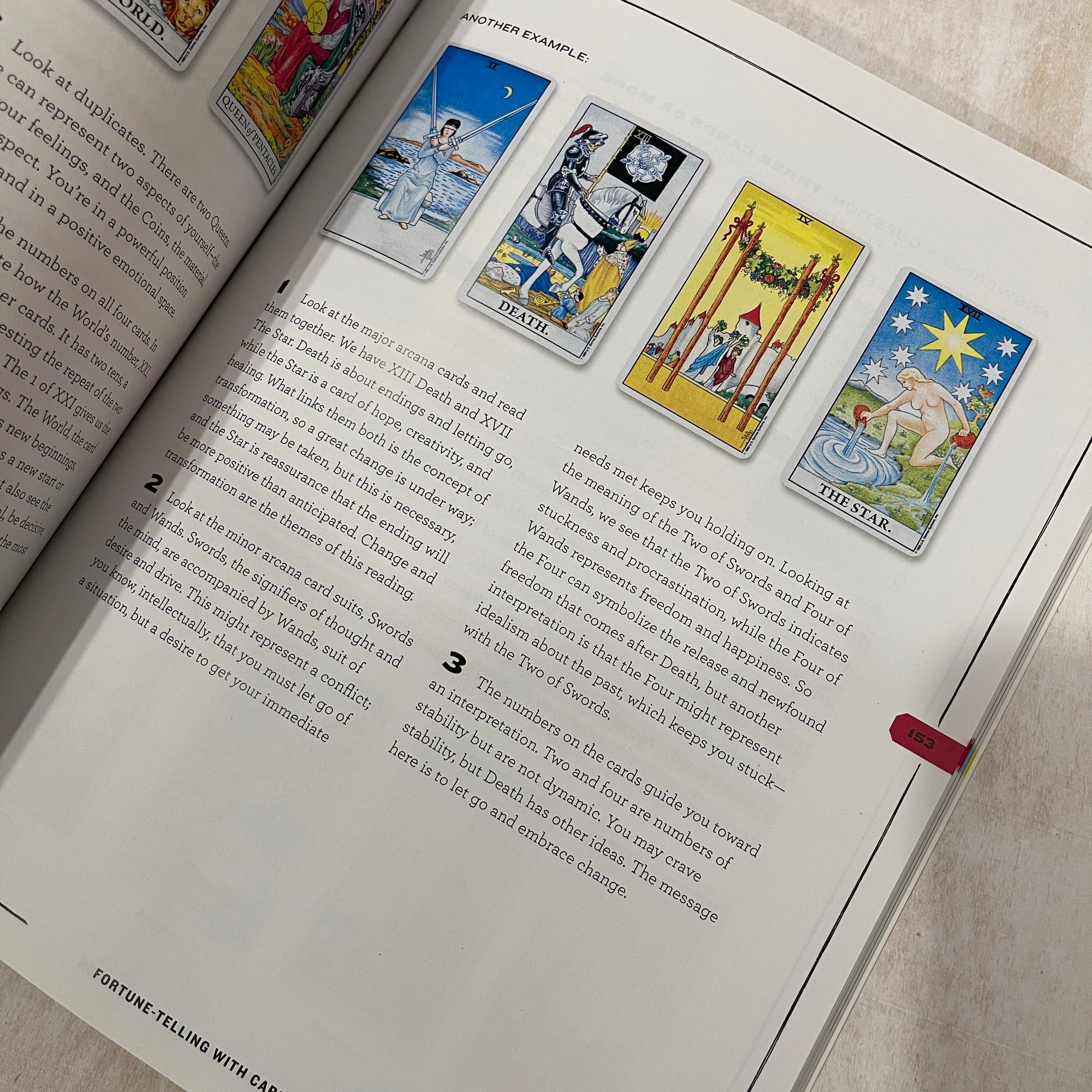 - A complete review of the major and minor arcana cards of the tarot, including layouts for various spreads